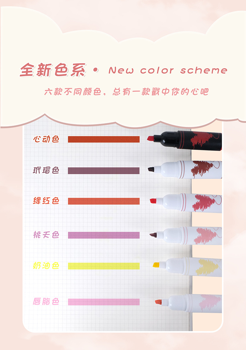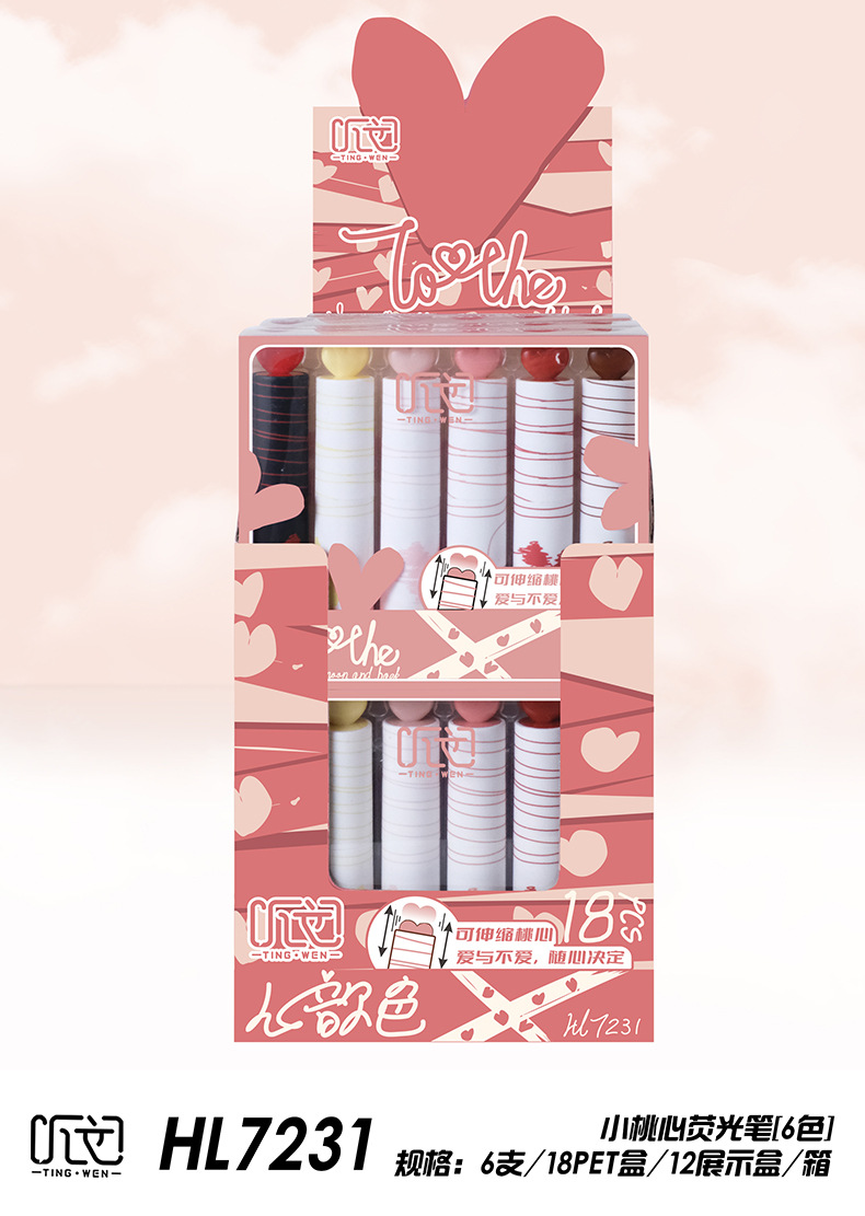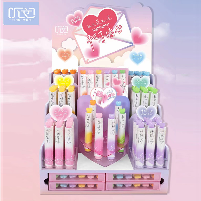聴文7232新型愛蛍光ペン学生用6色重点マーカーペン