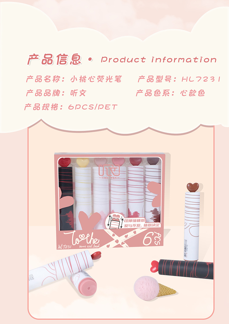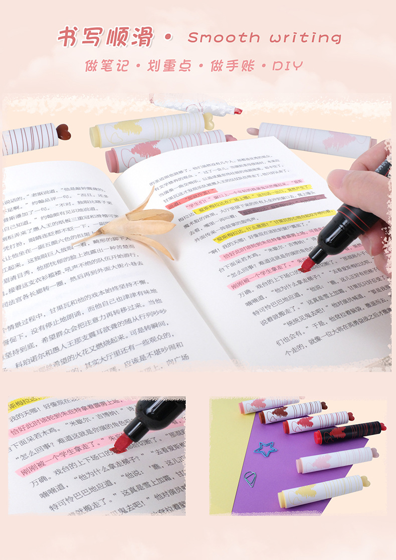 聴文7231小愛かわいい蛍光ペン学生は創造性6色で重点マーカーペンDIY手帳ペンを飾った