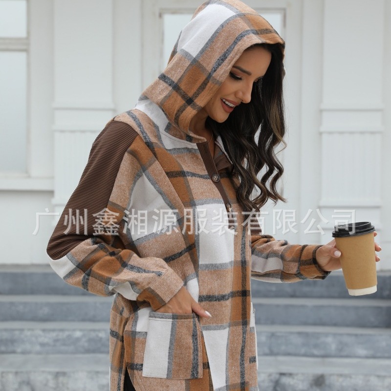 2025年秋冬新作 Amazon レディースファッション チェック柄ジャケット ボタン付きフード付きカジュアルルーズシャツ 在庫あり