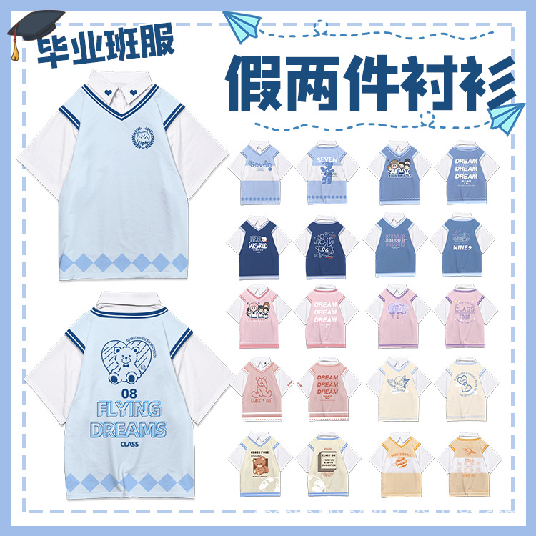 班服デザインシャツtシャツjk学院風卒業制服セット全身印運動会半袖diy印logo