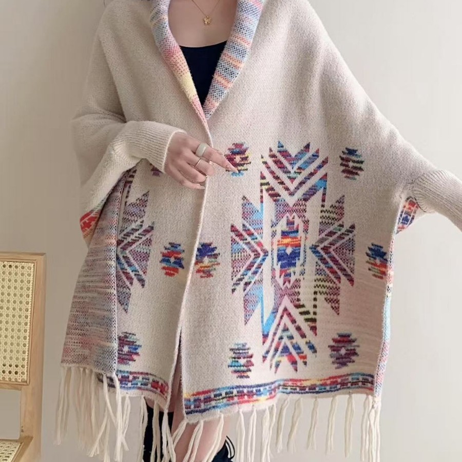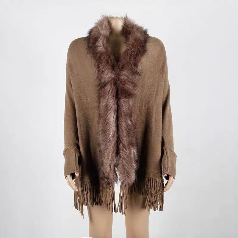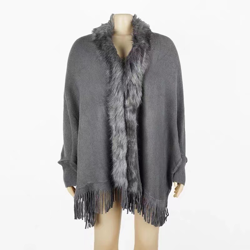 秋と冬の新しいファッションルーズファー襟バットスリーブニットマントカーディガンショールアウターマントジャケット女性用