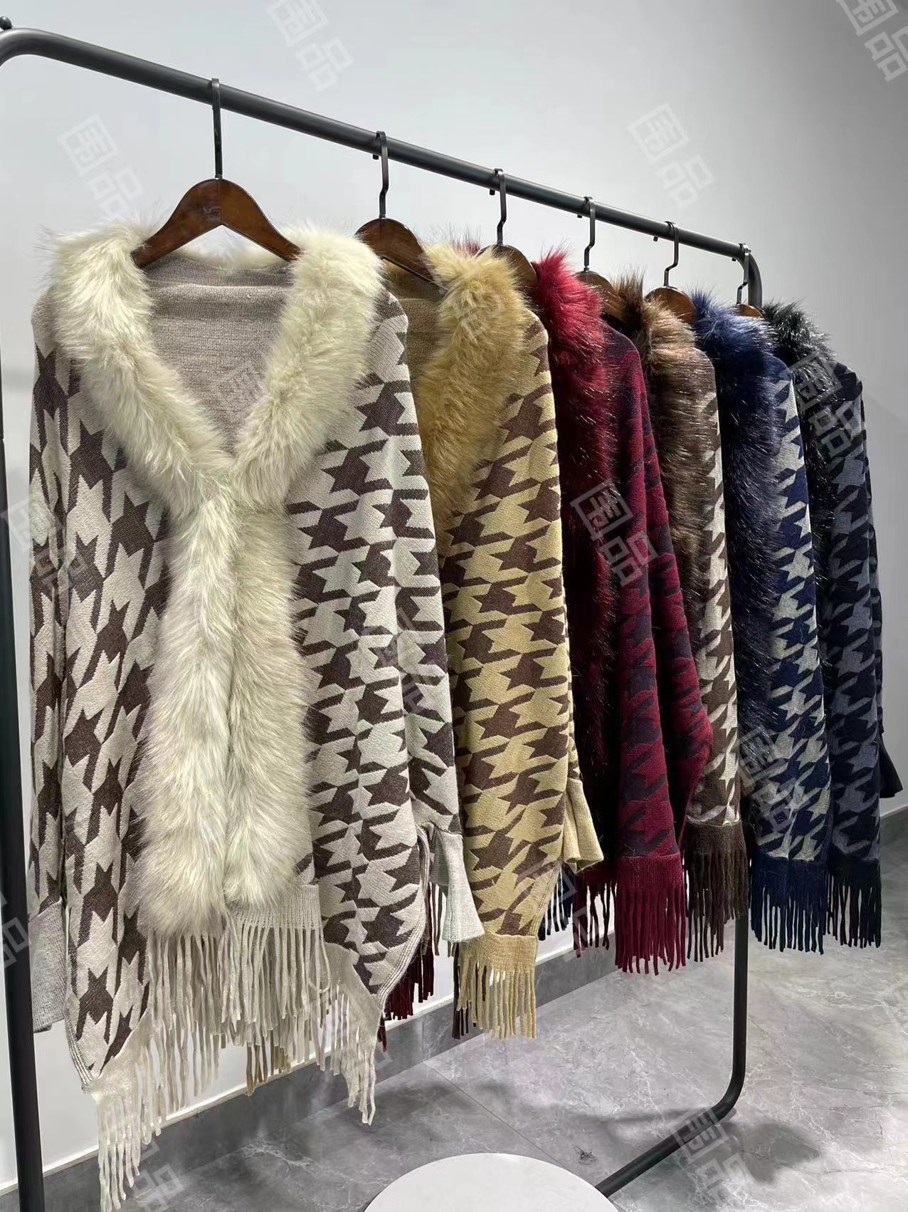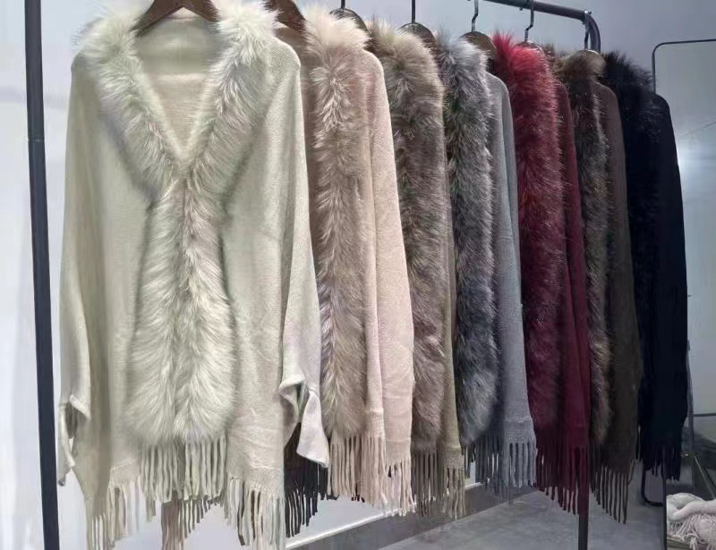 跨境名媛仿狐狸毛开叉2边毛条流苏斗篷披肩小红书国风外搭