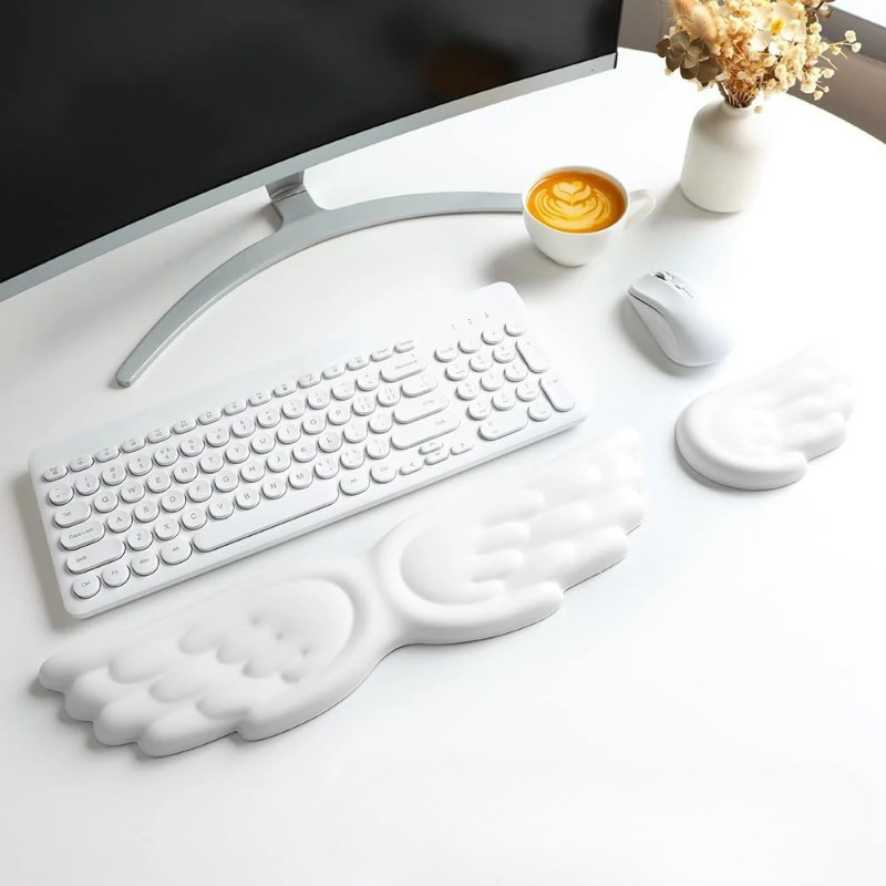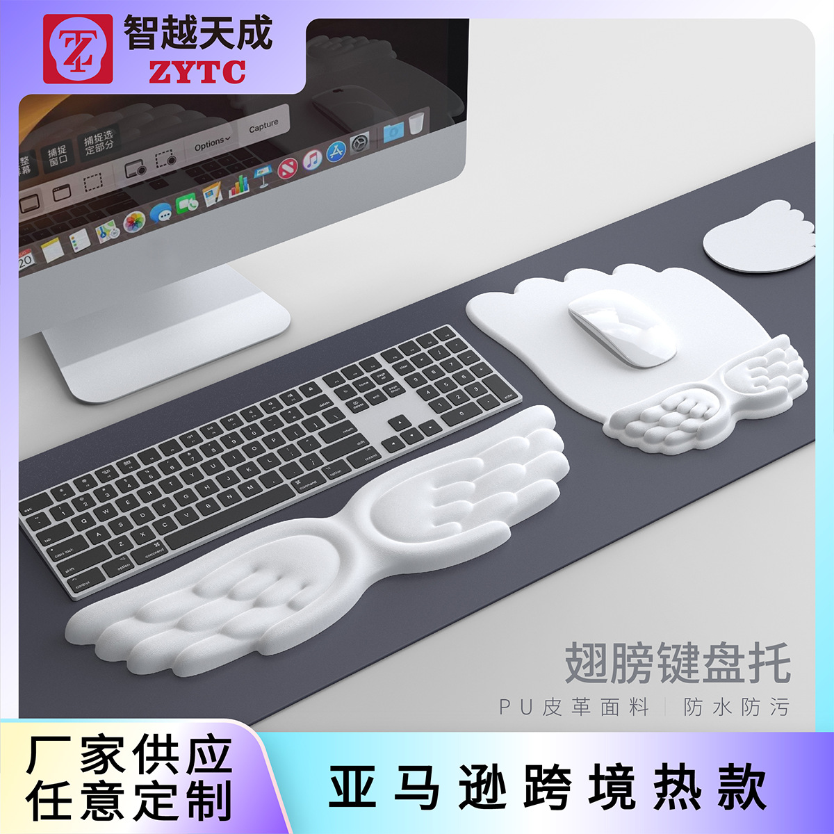 可爱天使翅膀键盘手托桌垫 创意女生办公防滑硅胶大号护腕键盘托