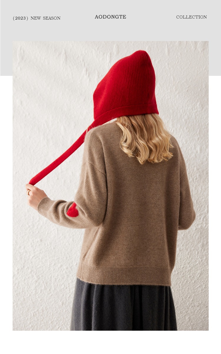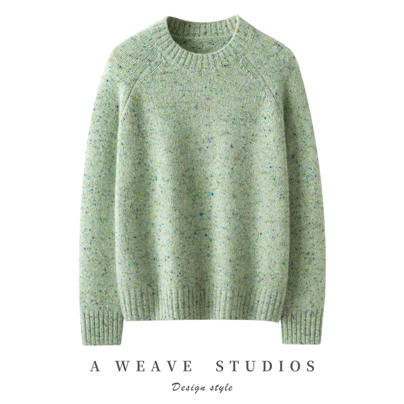 彩点100山羊绒衫五针加厚重磅新款慵懒风插肩袖韩版圆领羊绒毛衣