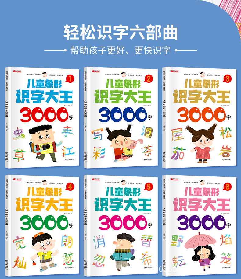 子供の象形の識字王3000字のフルセットの6冊の識字書の赤ちゃんは子供の学前の識字を認識します。