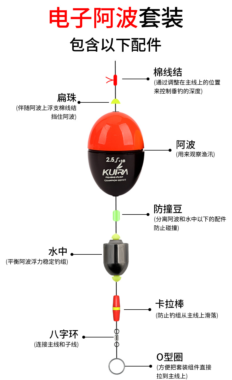 批发电子阿波漂矶钓浮游线组夜光漂远投滑漂配件套装海钓鱼漂