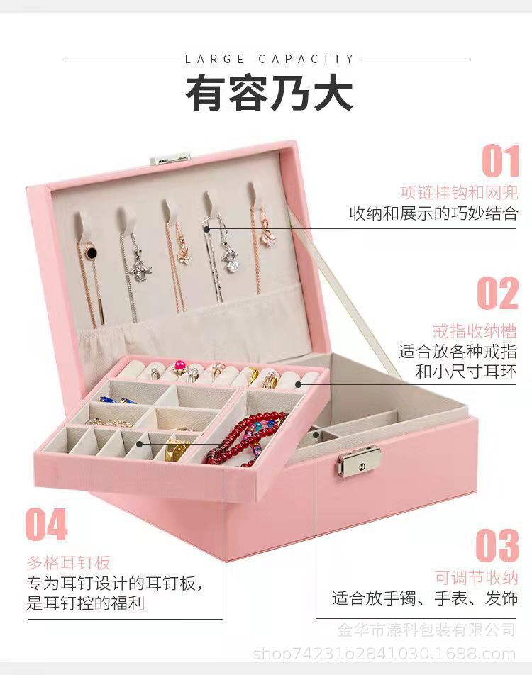 新しい二重ロック付きアクセサリーケース収納ケースピアスケースアクセサリーアクセサリーアクセサリーアクセサリー収納ケース大容量卸売り