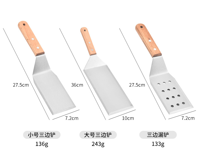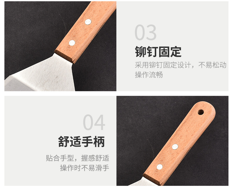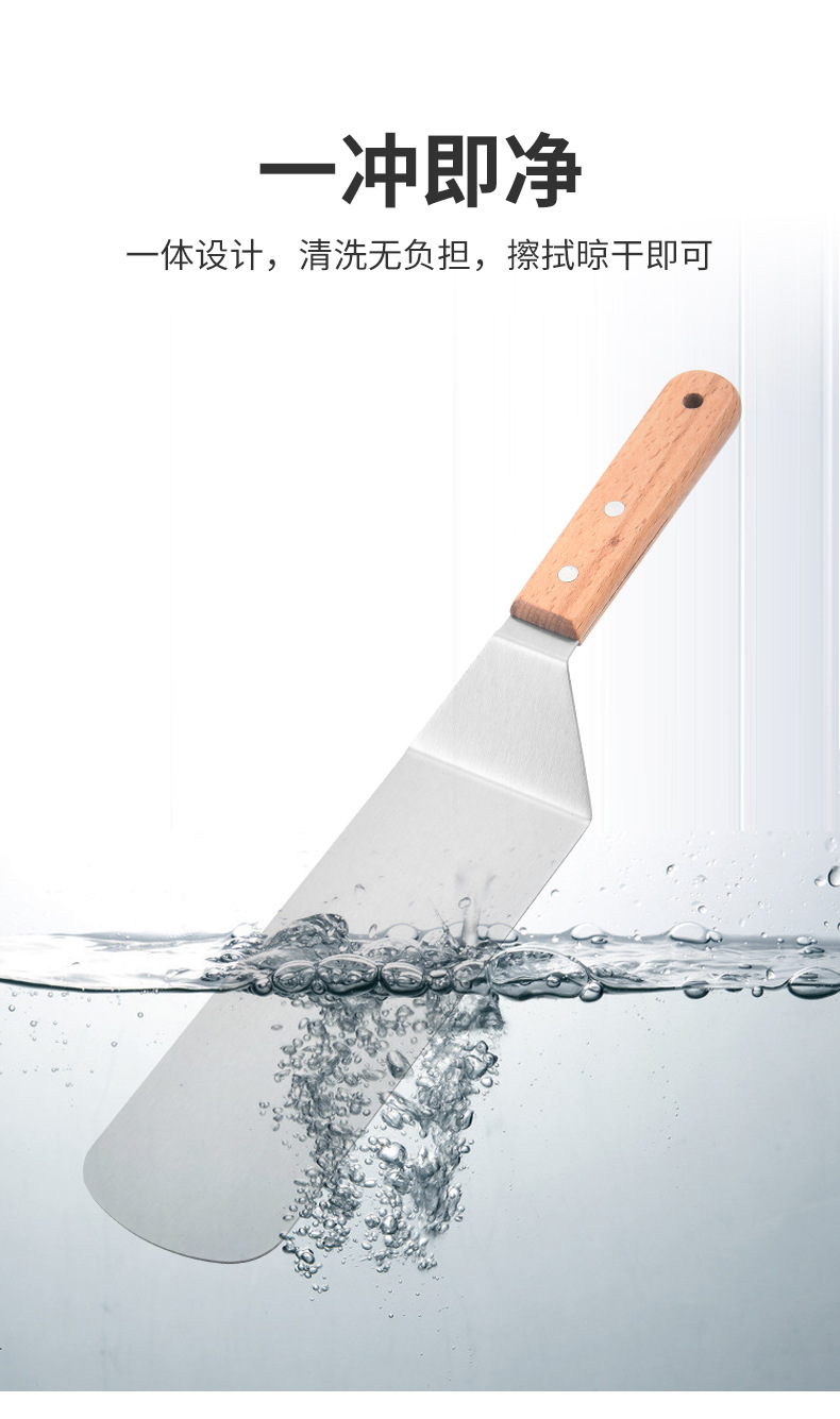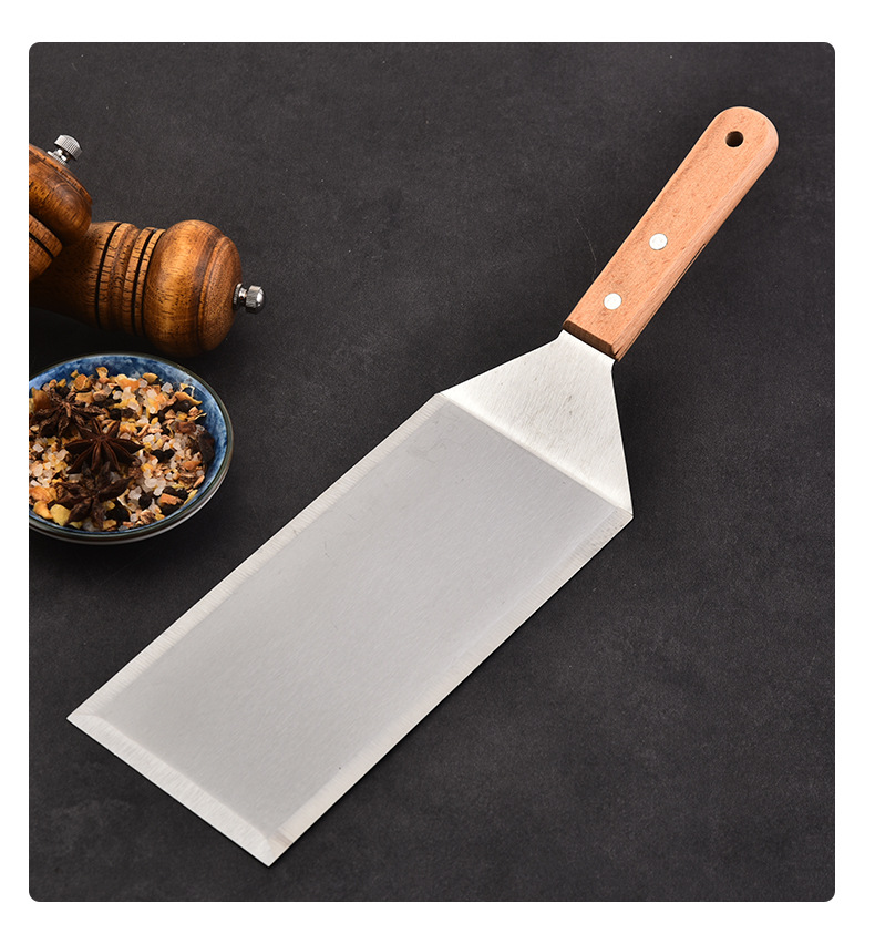 三面平シャベル、キッチンガジェット、斜めシャベル、鉄板焼きシャベル、ステンレス木柄パンケーキケーキ調理シャベル