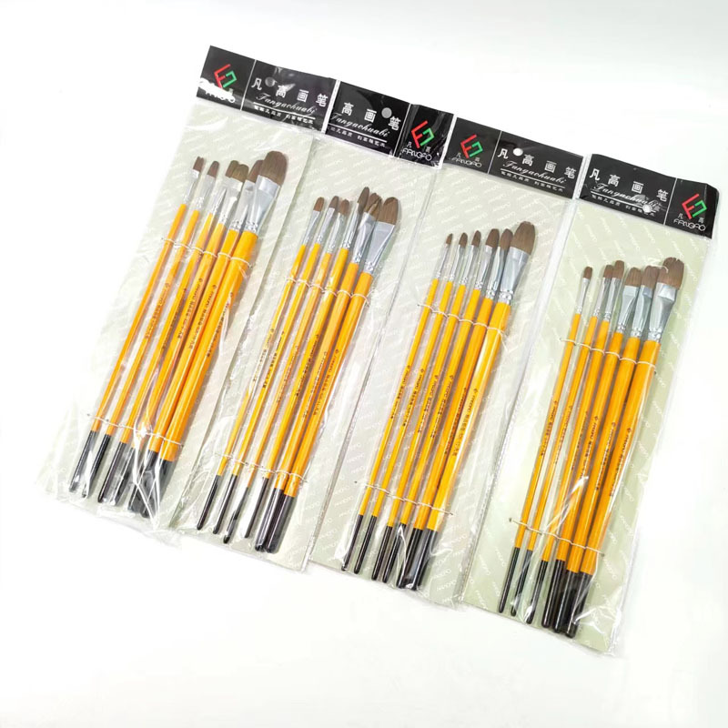 ゴッホ 826 ウルフチョークフルセット卸売ロングイエローロッド水彩アクリルガッシュペイントブラシ初心者