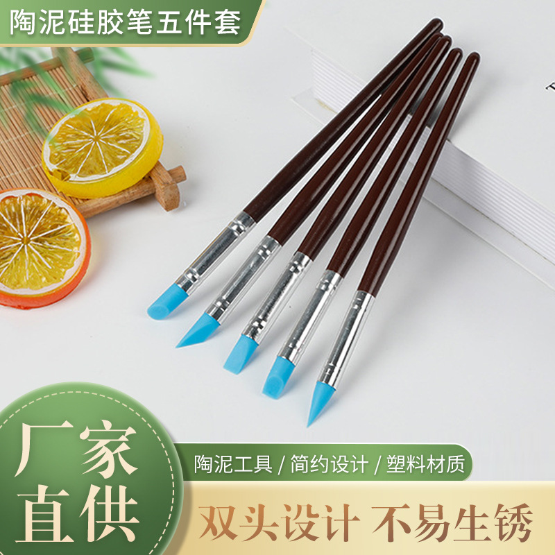 陶泥道具シリカゲルペン軟頭ペン軟質陶泥粘土道具5点セット軟頭除痕修飾ペンセット
