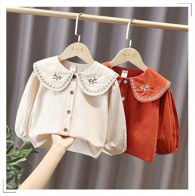 春と秋の女の子の子供服のシャツの赤ちゃんの子供の個性のファッションのブランドのファッションの韓国版の子供の襟の刺繍の花のシャツ