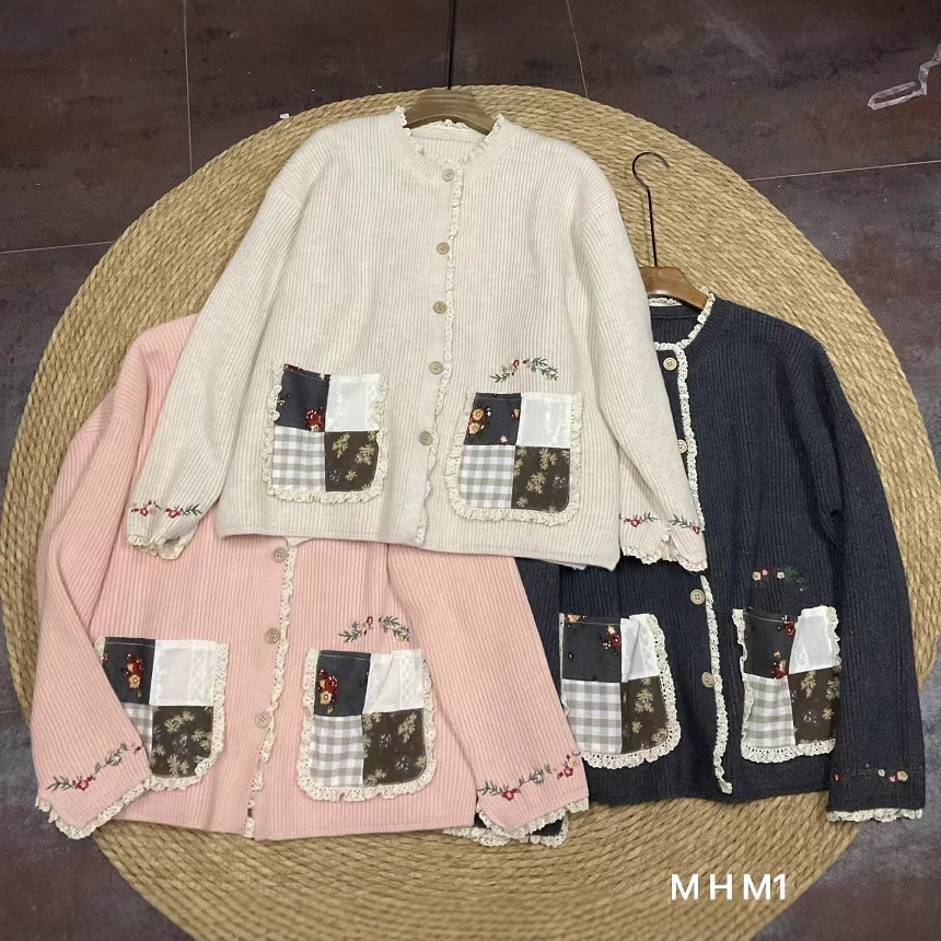 M1日系文芸ゆるい森系大版甘い布刺繍セーターコート女