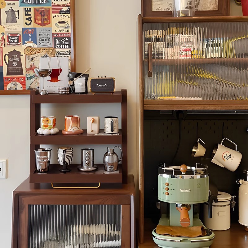 無垢材カップホルダーコーヒーマシン収納ラックコーヒーコーナーレイアウトウォーターカップコーヒーカップ収納ラックデスクトップラック