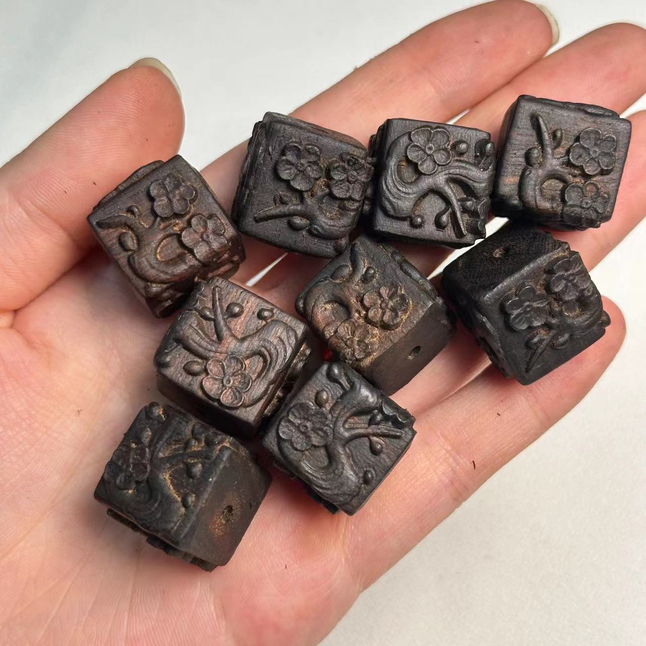 沈香木彫刻梅の花の玉の散珠DIY文は仏珠のアクセサリーを遊んで携帯のチェーンのブレスレットのペンダントを飾って掛けます。