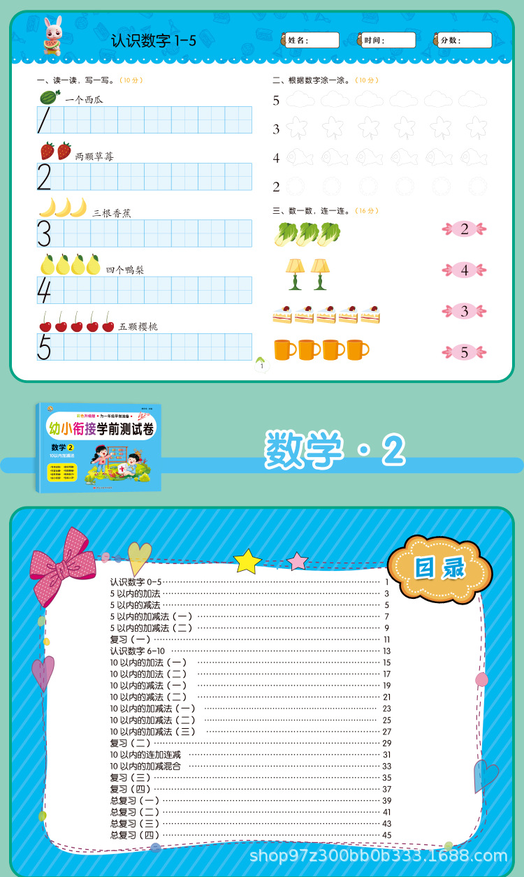 幼い子供は就学前テストボリューム言語数学ピンイン大クラスの就学前クラスの練習帳を接続して、一年生のために準備します