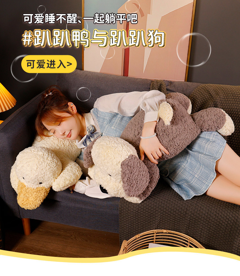 新型のかわいいうつ伏せアヒルは枕を抱いて大きな耳にうつ伏せになります。