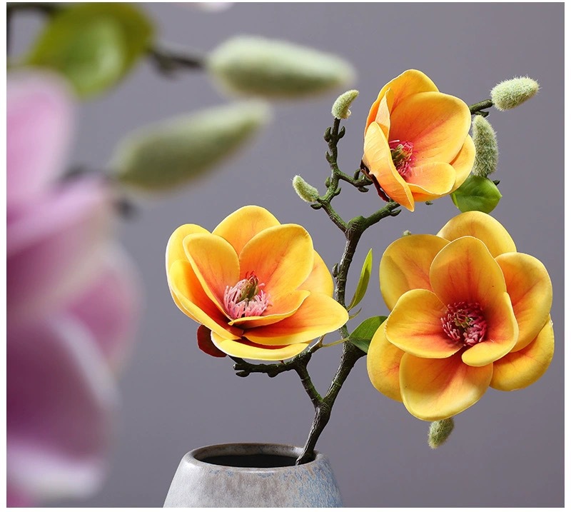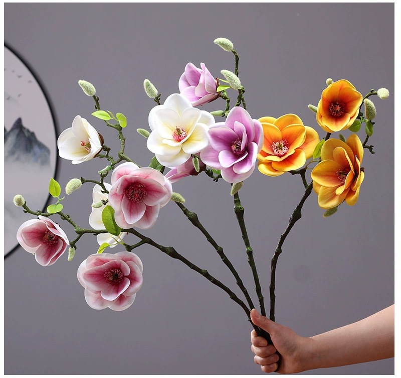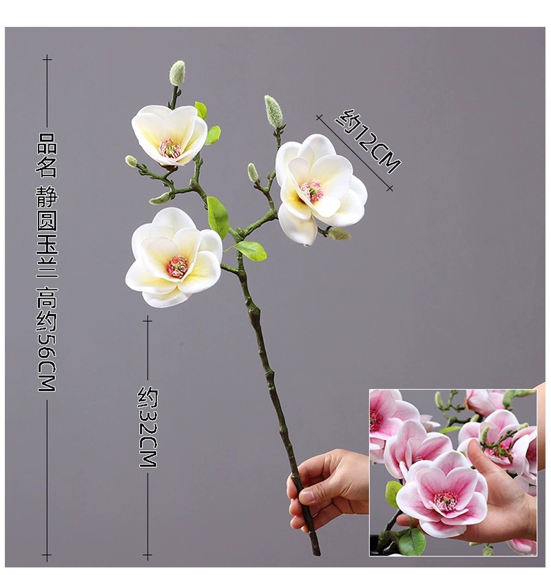 新シミュレーション中国式ミニ3頭の短枝小碗蘭玉蘭3dプリント玉蘭家庭ソフト人工花材