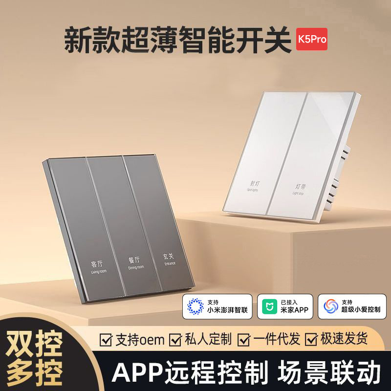 超薄型スマートスイッチはMijiaアプリに接続されており、肌に優しいガラスを使用し、音声制御パネルとデュアルコントロールをサポートするk5proです。