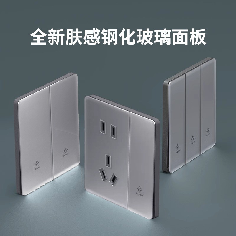 新型超薄肌感ガラスm 6スイッチセットコンセントは家庭内装86サイズtype-cに適している