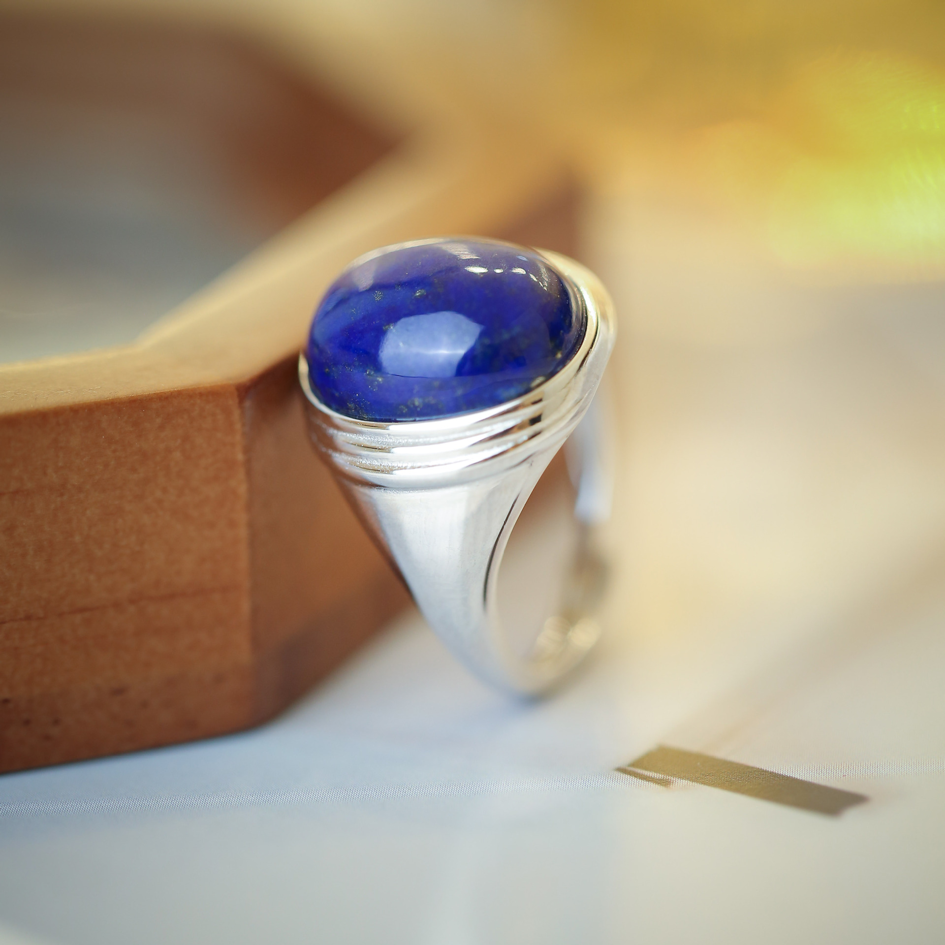 S925 スターリングシルバー金メッキ象嵌ラピスラズリリング大きな卵型楕円形ファッションメイラードスタイルライト高級ハンドジュエリー