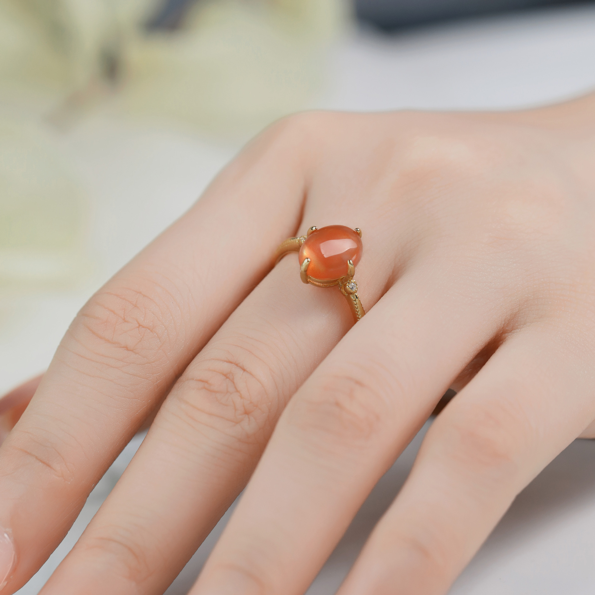 S925純銀金メッキは南紅指輪の卵面四爪を入れてシンプルでファッション的で現代的な個性のレトロな女性の優雅なモデルです。