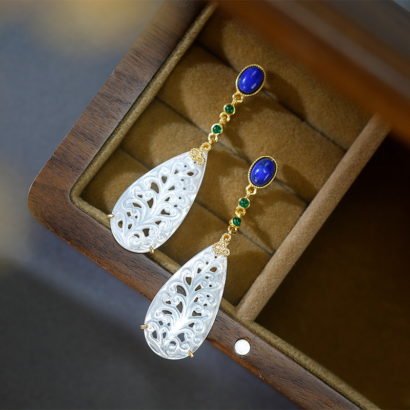 S925銀は青金石ヒョウタンのピアスをはめ込んでいます。