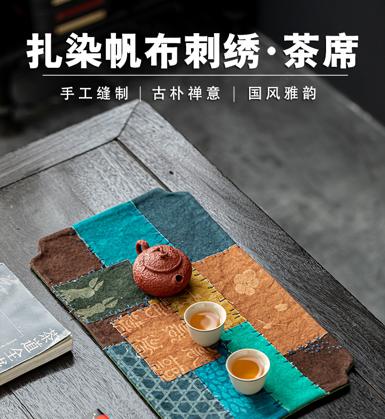 中式刺子绣枝蔓茶席扎染干泡席茶道配件茶室茶台茶席茶垫中式桌布