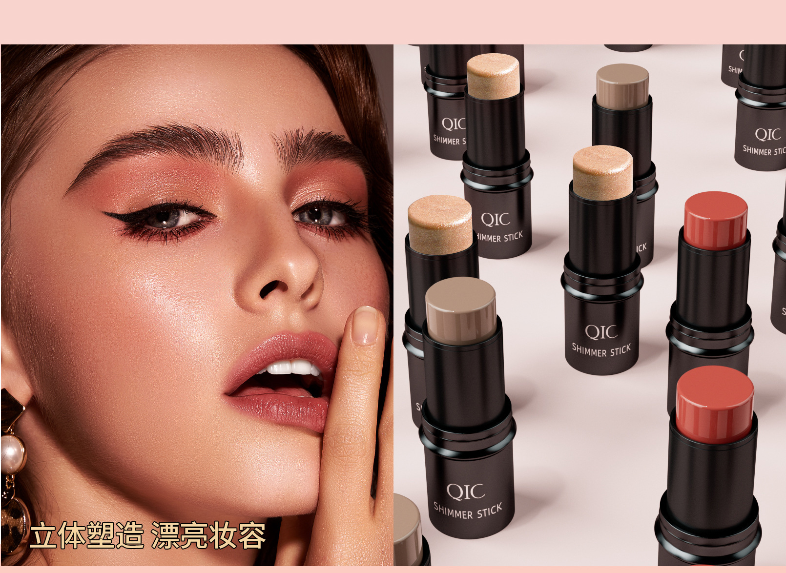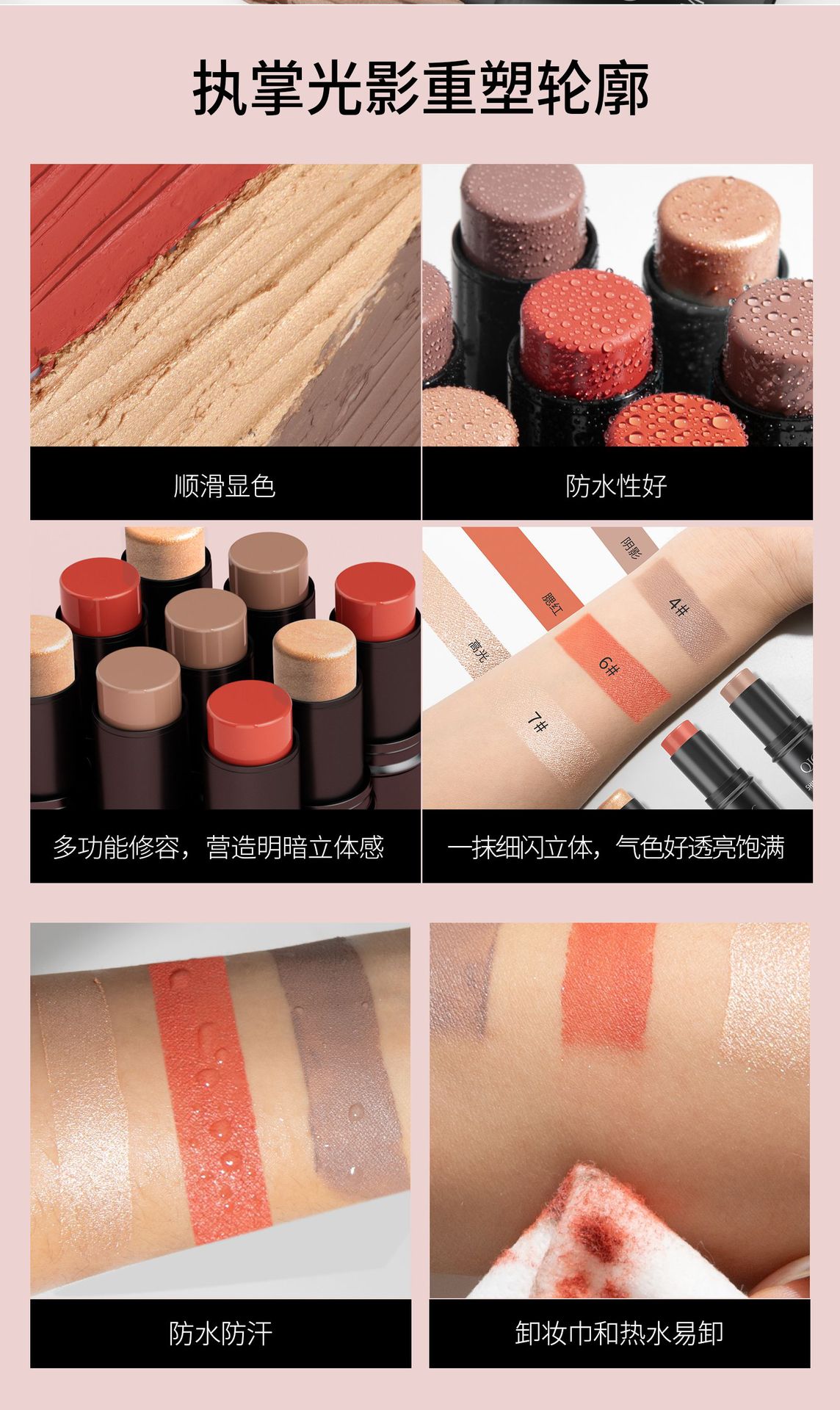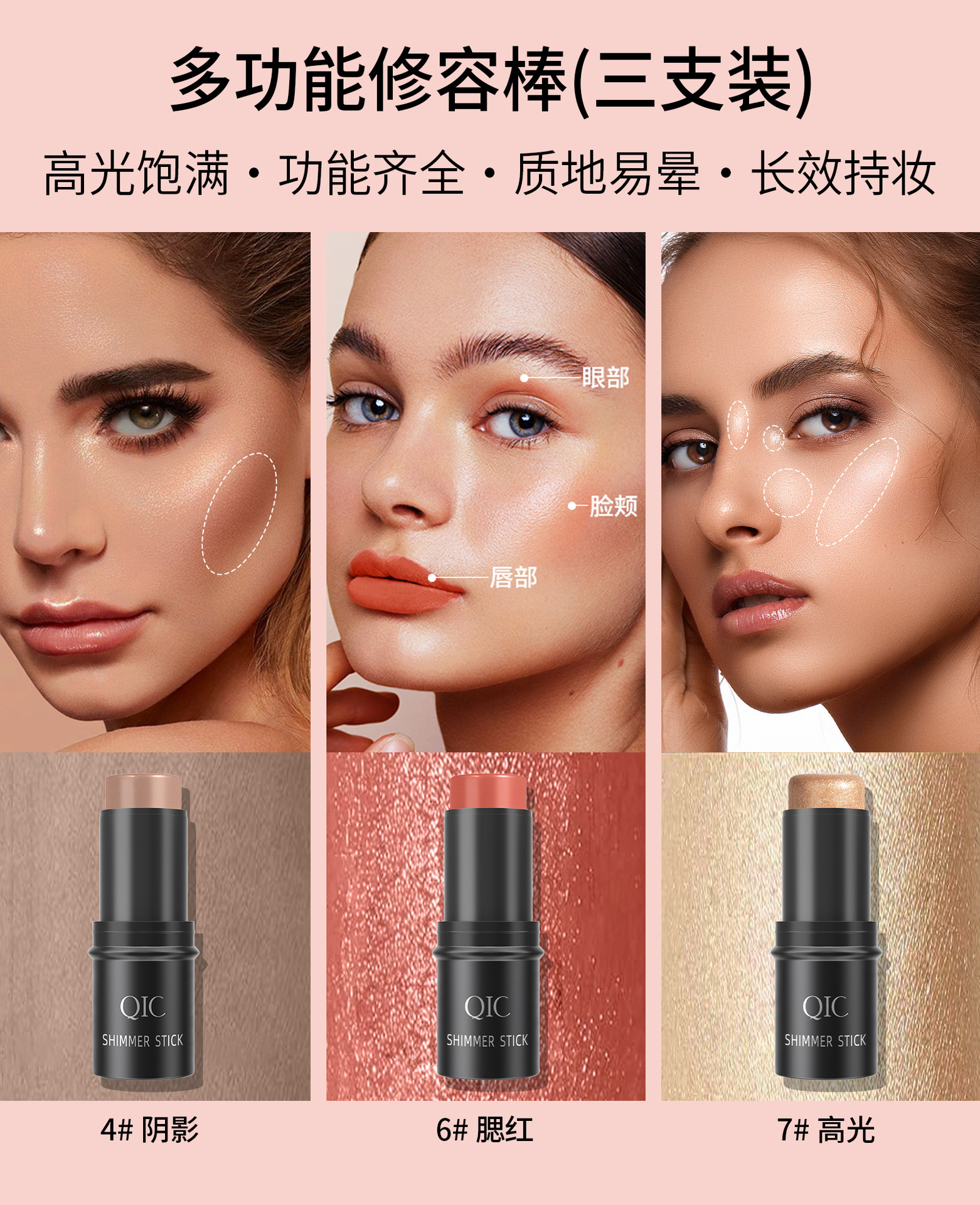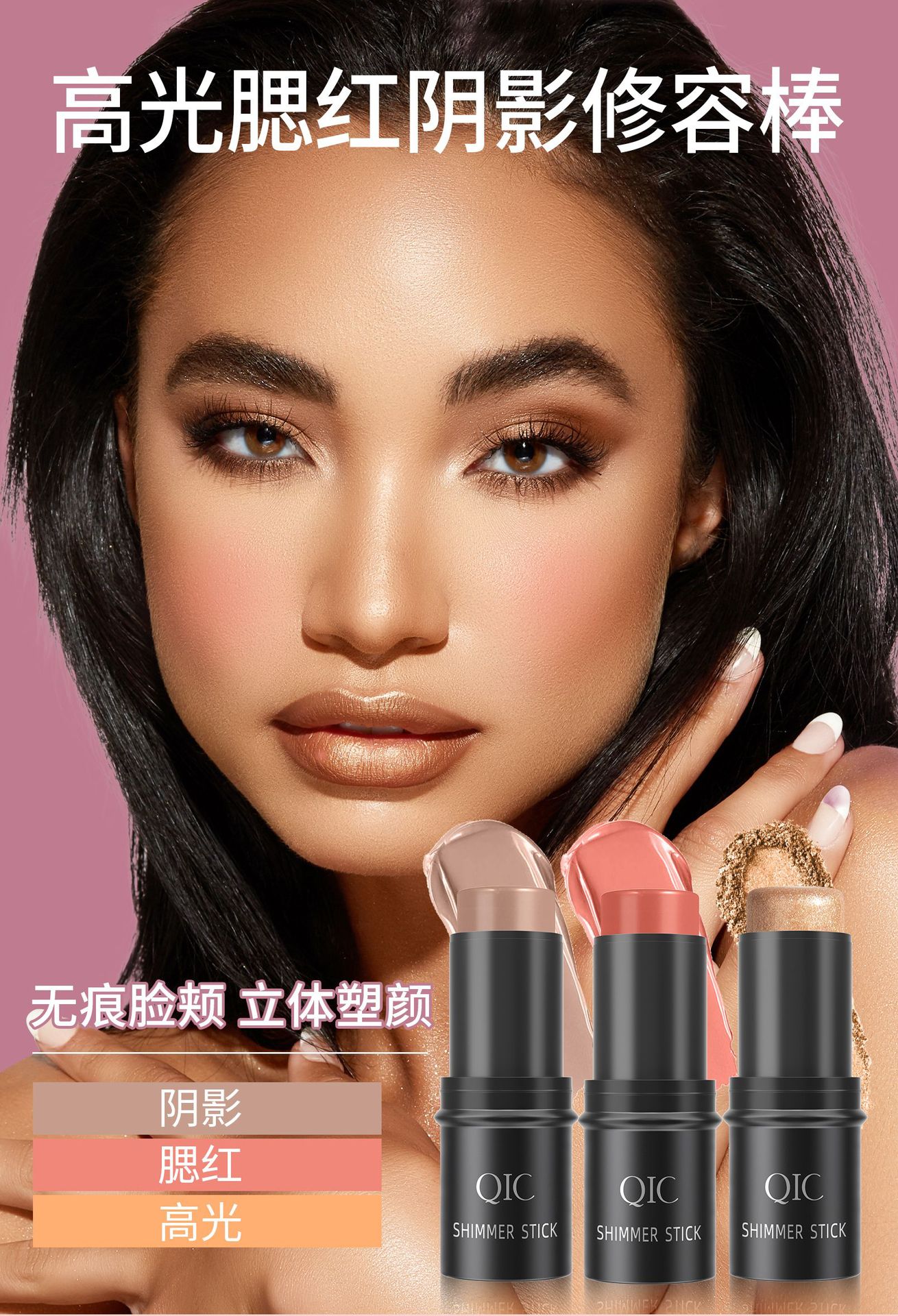 Qic多機能3d修容棒自然カバー防水立体ハイライト影チーク化粧棒クロスボーダー化粧棒