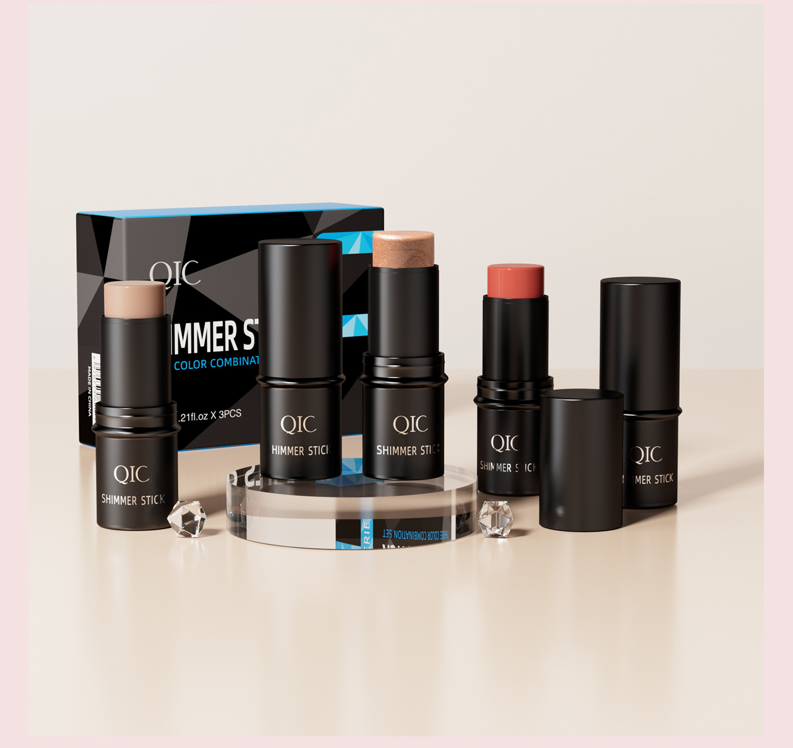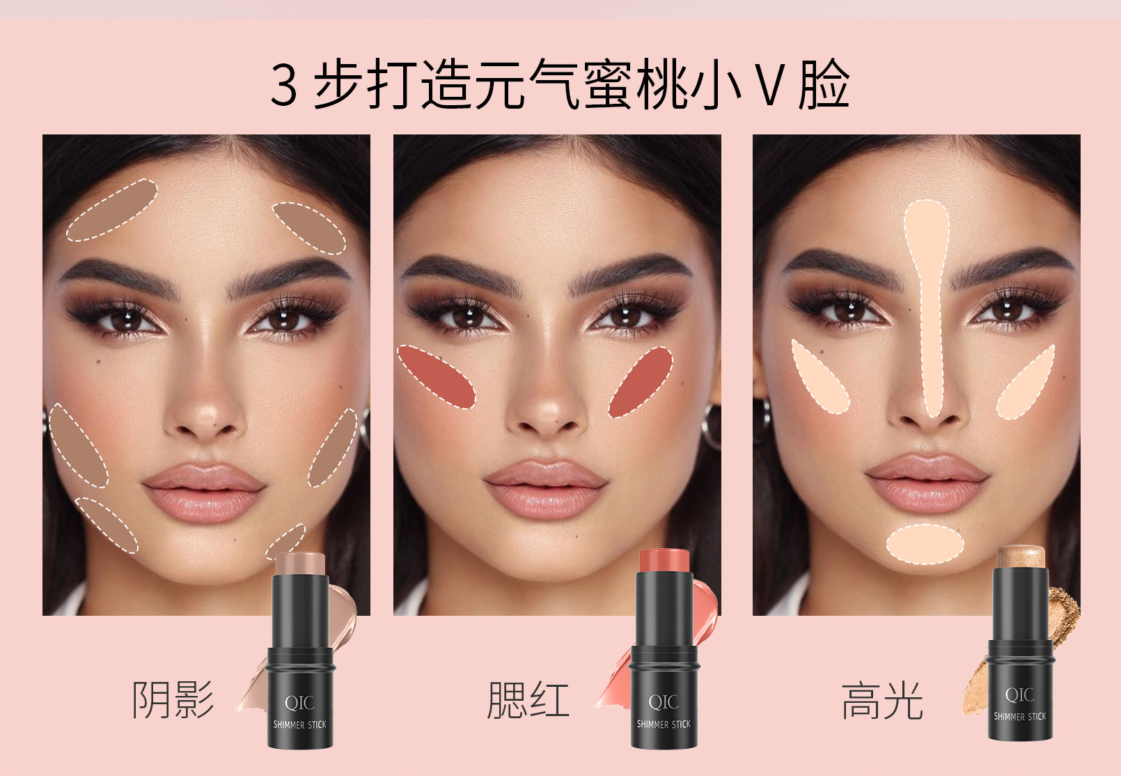 Qic三合一多機能修容棒セット古銅色の底カバーはハイライトのチークの影の棒を明るくします。