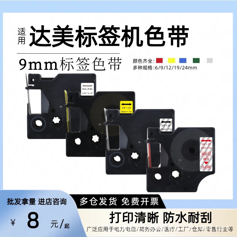 タミd1ラベル機カラーテープ9mm白地黒字40913/40918艾力生不乾性シールを適用