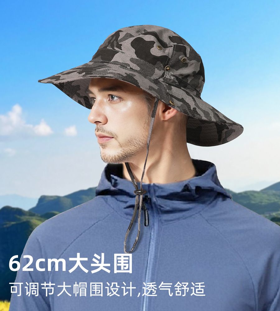タクティカルハット迷彩大きなつばの日よけ帽子屋外日焼け止め漁師の帽子大きな頭囲日よけ帽子釣りジャングルハット夏