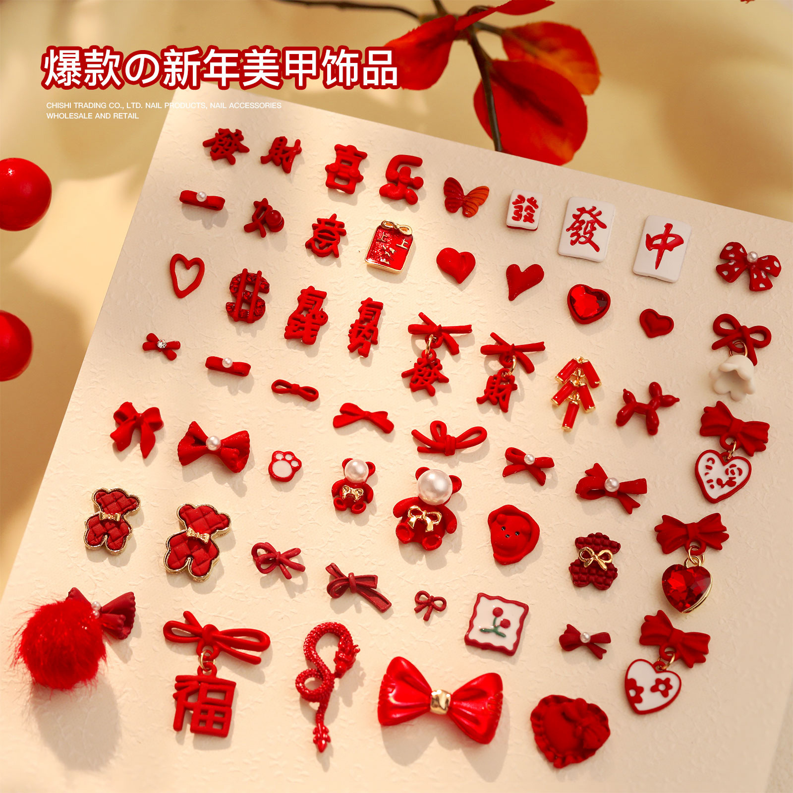 ネイルアクセサリーの新しい新年の赤いお祝いの合金アクセサリーおめでとうございます。