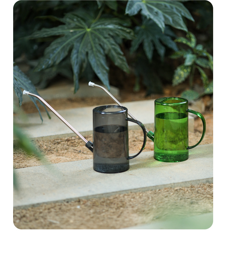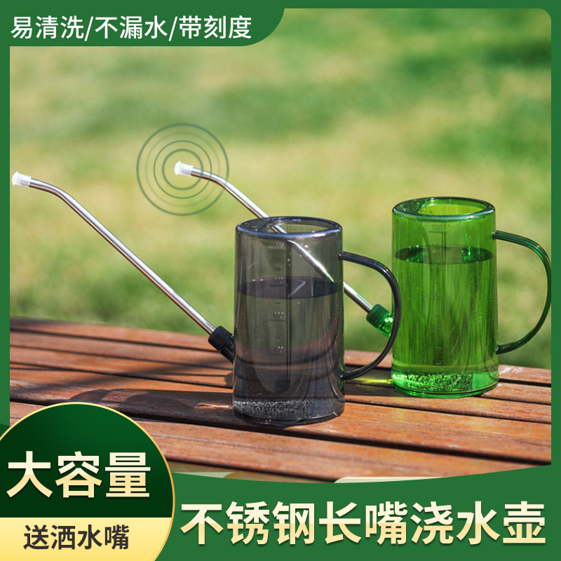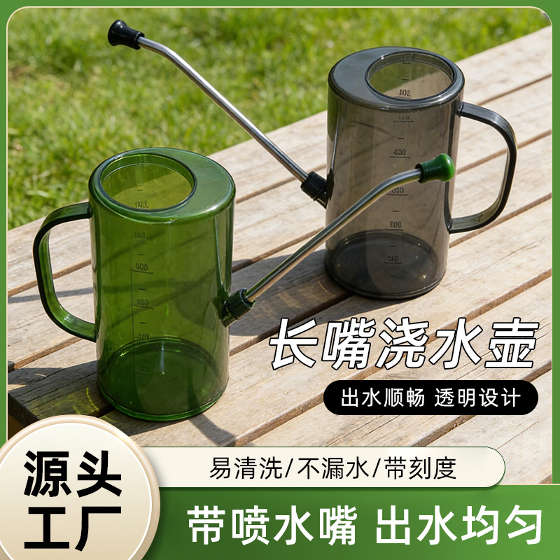 新款不锈钢长嘴塑料带刻度透明浇花水壶花园园艺工具浇水壶现货