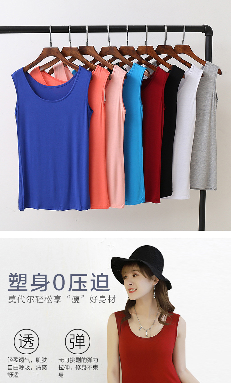 モーダル胸パッド付きベスト、女性用アウターレイヤー、薄手、大きいサイズ、スリムフィット、オールインワンボトリングシャツ、露出防止トップ