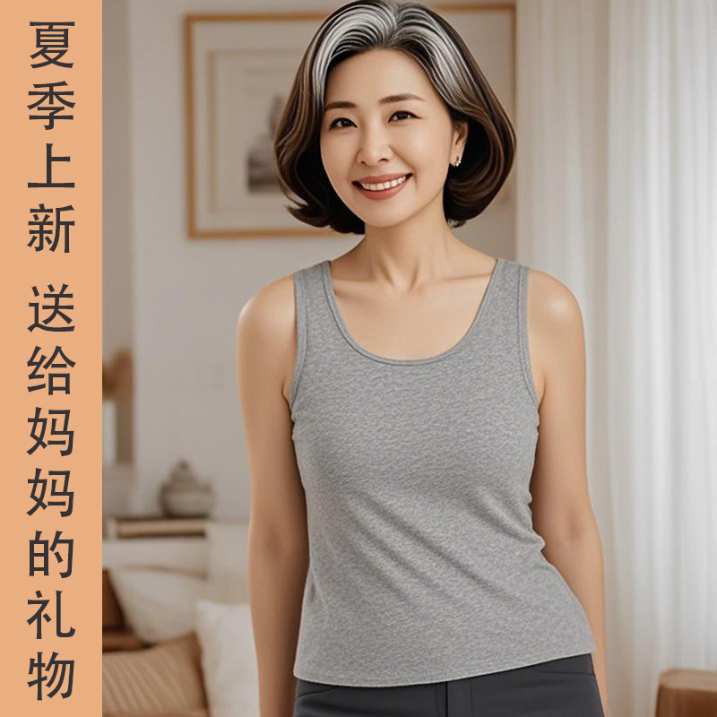 夏の薄いタイプの中高年のモデル綿の女性のお母さんのベストのゆったりしている袖なしの下着の半袖のおばあさんの老人の汗のシャツ