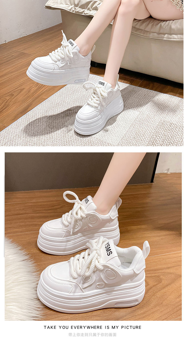 薄型2025新作厚底万能プラットフォームシューズカジュアル小柄白靴身長アップスニーカー