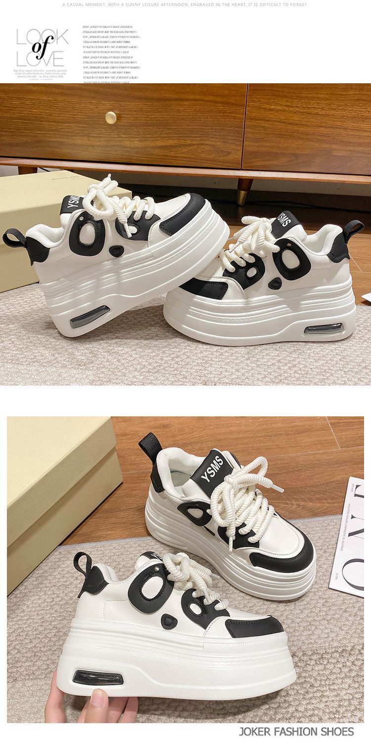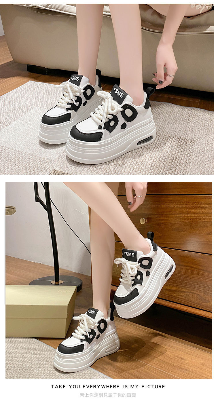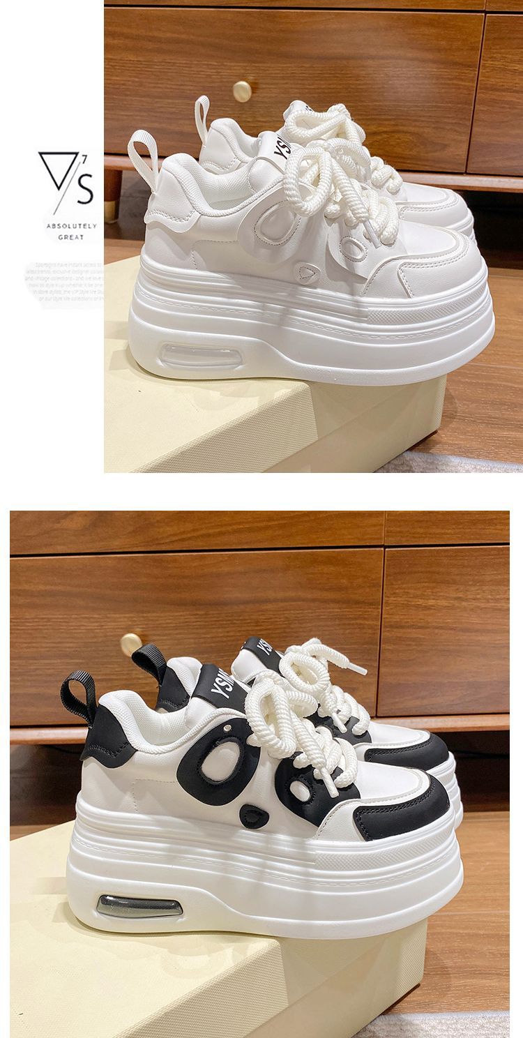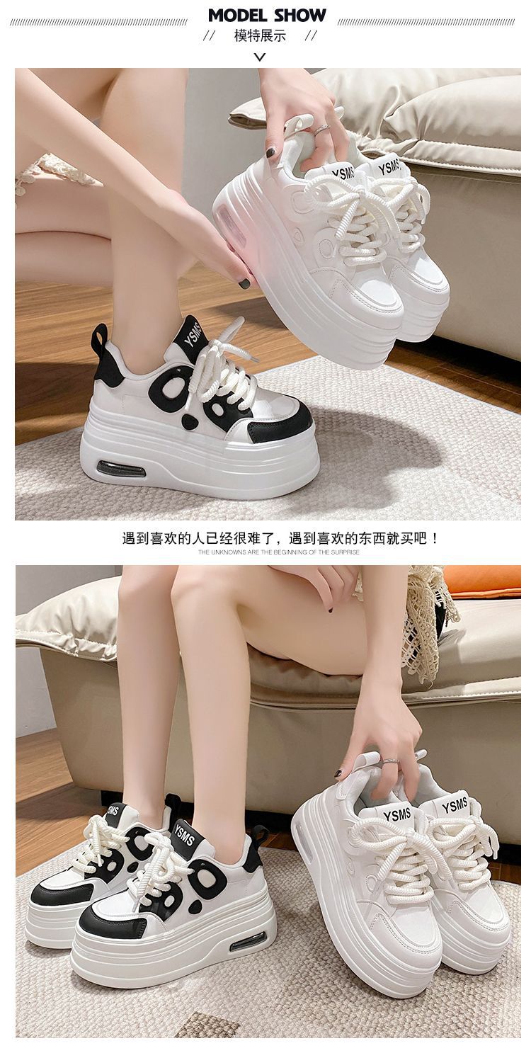 黑白熊猫鞋女2025秋季新款小个子8cm松糕厚底增高小白鞋运动休闲
