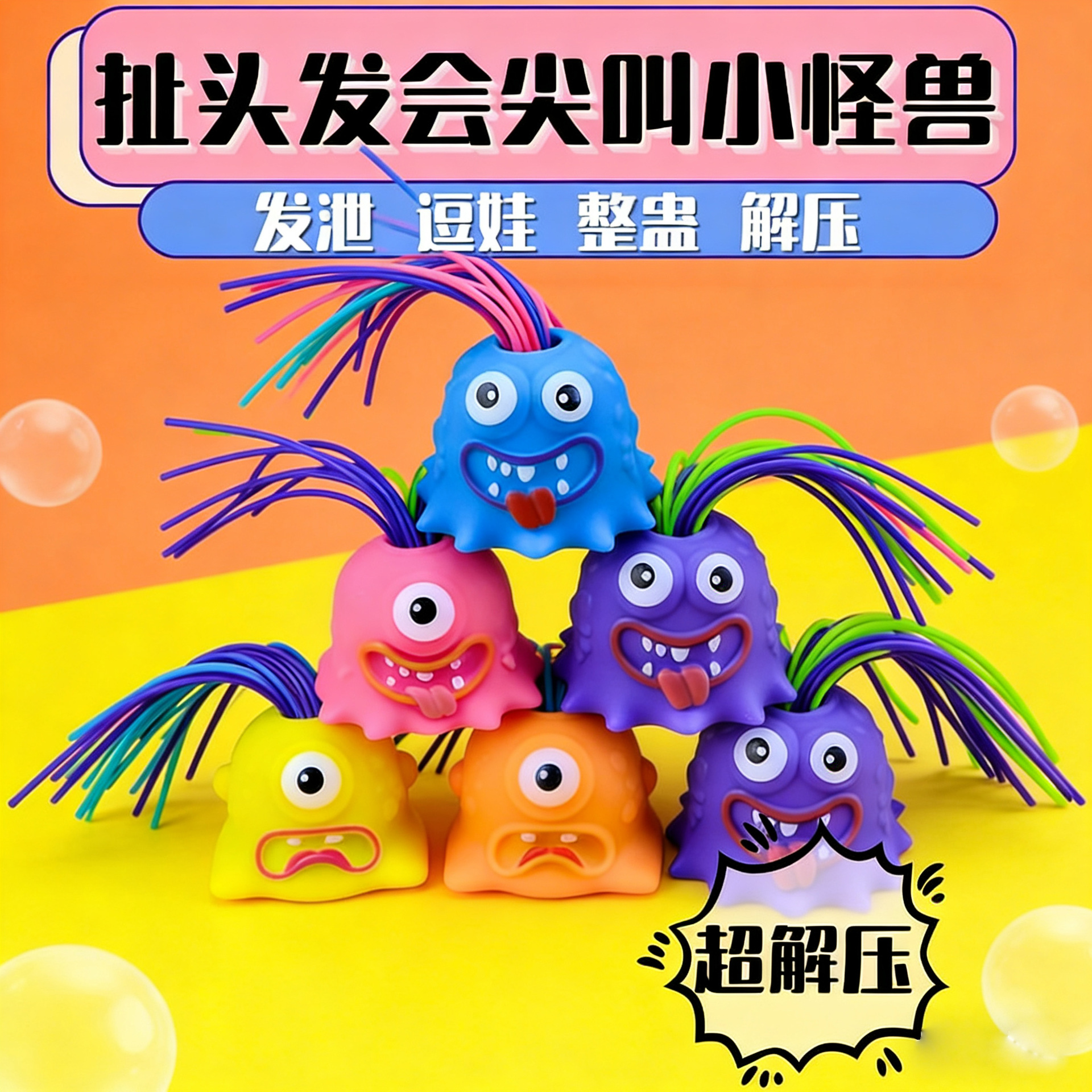 抖音同款现货小玩具扯头发会尖叫的小怪兽解压尖叫发泄玩具批发