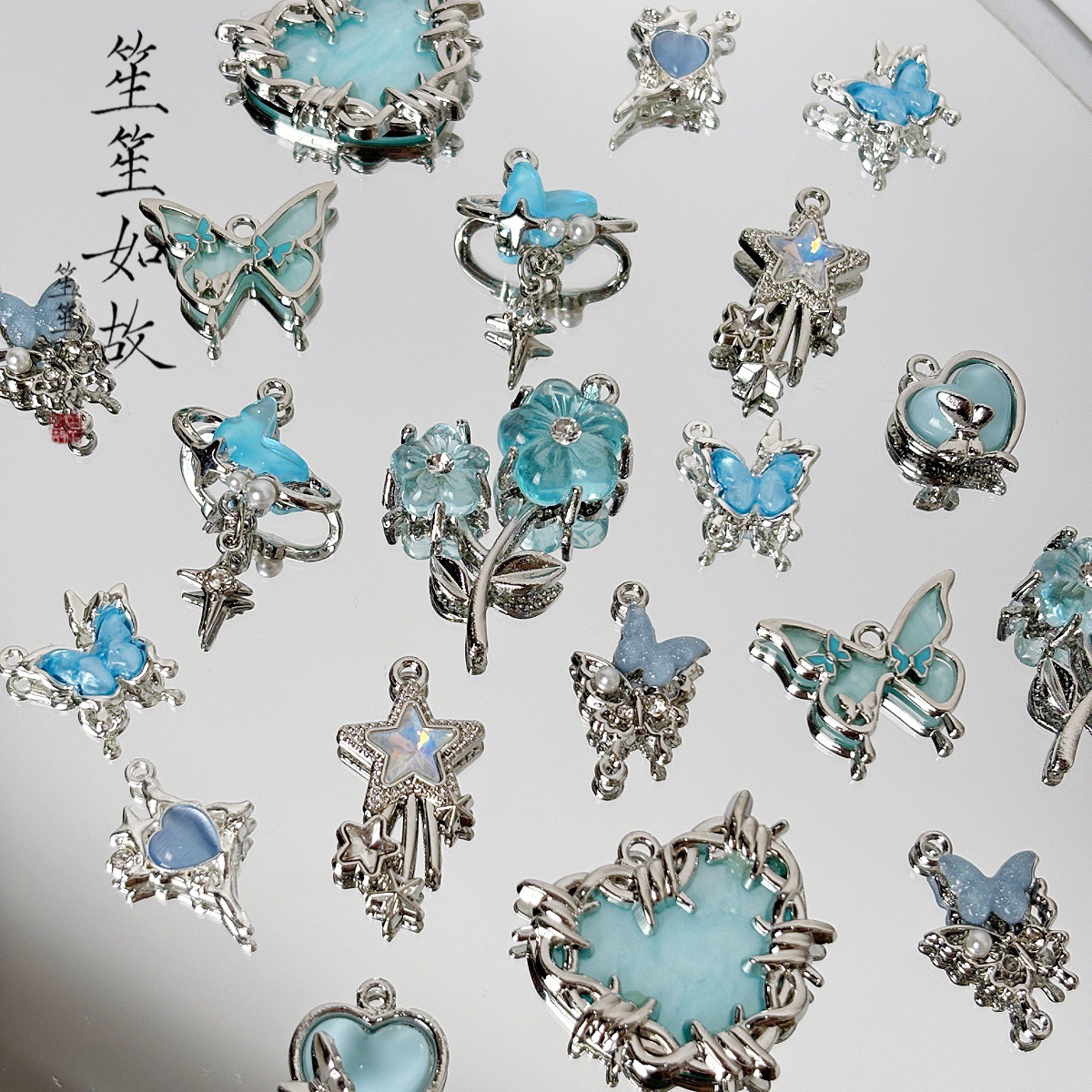 ピンクY2k风少女蝶月合金ペンダントビーズdiy手作り材料ブレスレットネックレスアクセサリーアクセサリー