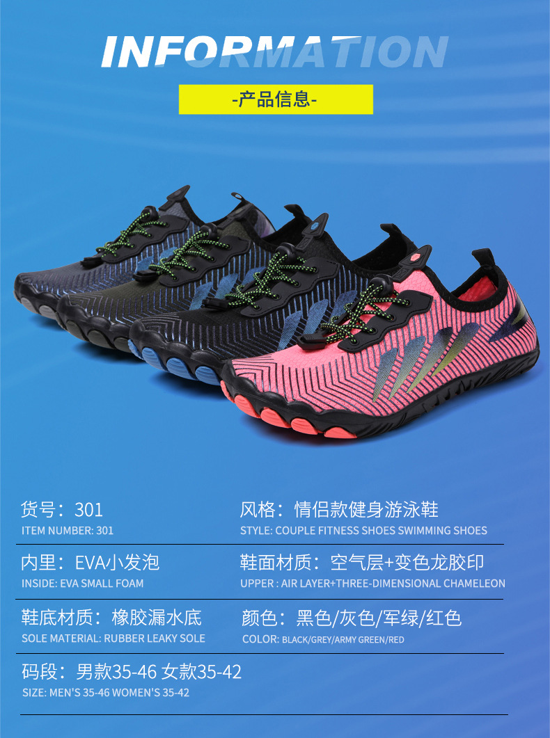 国境を越えた屋外のビーチシューズは、水泳で海を追う靴の男女が靴の速乾五本の靴を登る漂流靴を泳いでいる