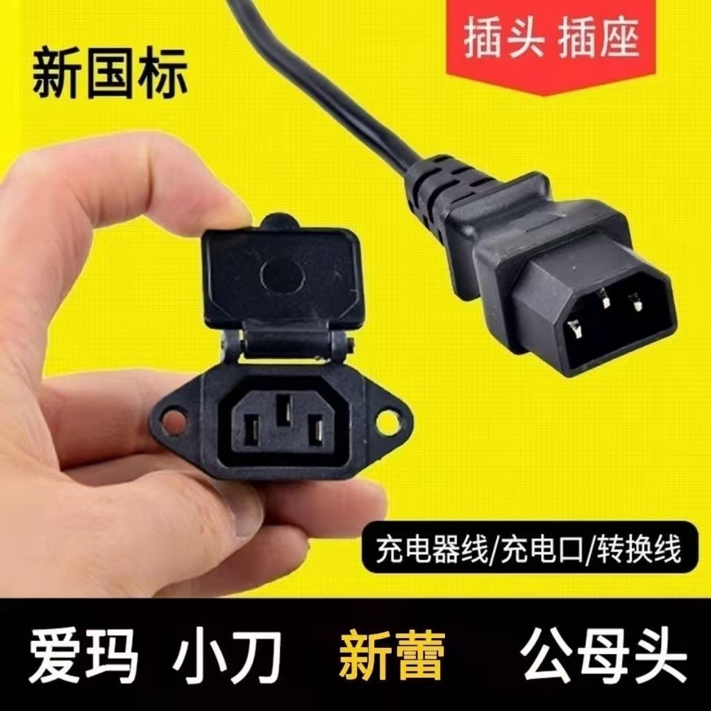 電気自動車自転車共通型充電口コンセント防水カバー品字頭プラグ三縦接続2.8端子