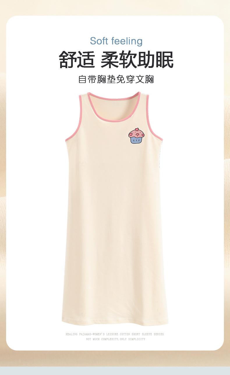 卸売りのパジャマの女性の夏の袖なしの純綿は胸のパッドを持ってベストのパジャマの女性のタイプの夏の薄いタイプの家の服を着ることができます。