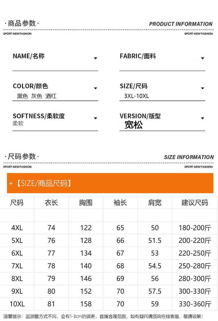 サイズ 4xlは180-200斤を提案する,5xlは200-220斤を提案した,6xlは220-250斤を提案した,7xlは250-280斤を提案する,8xlは280-300斤を提案した,9xlは300-330斤を提案する,10XL が推奨されています 165-180kg