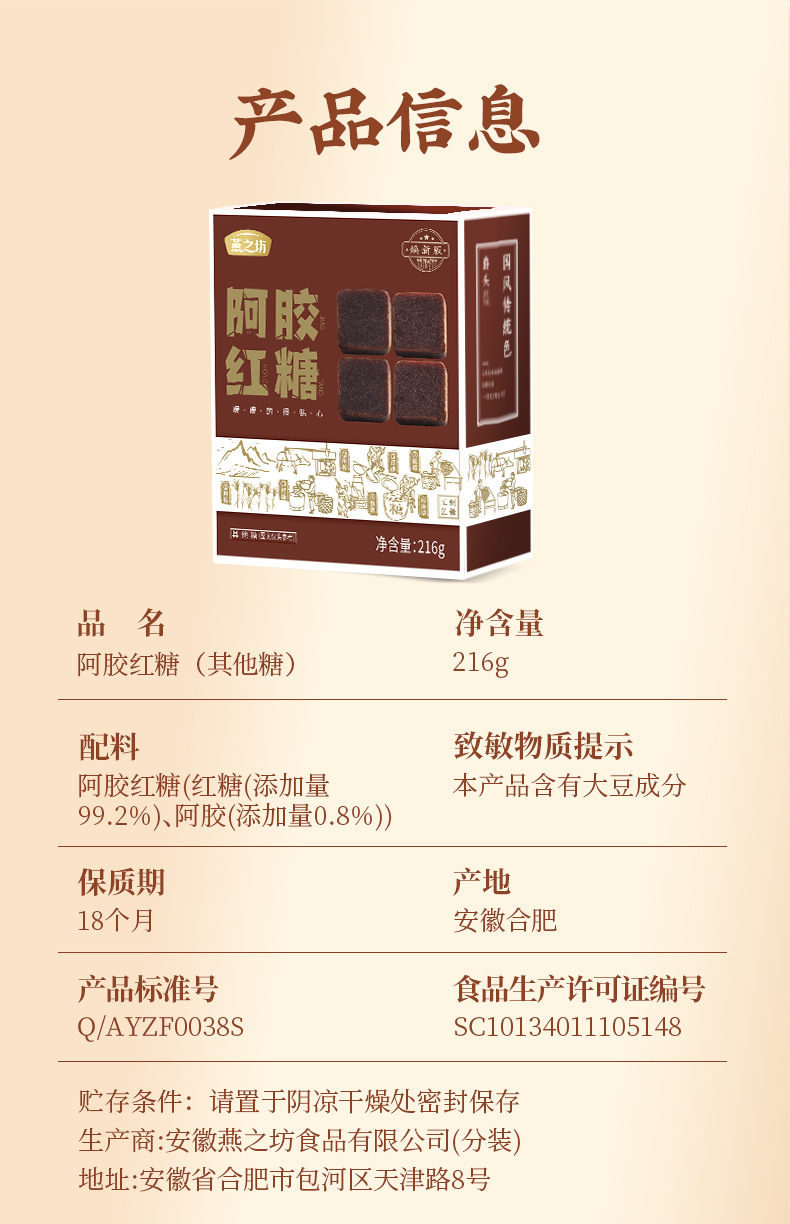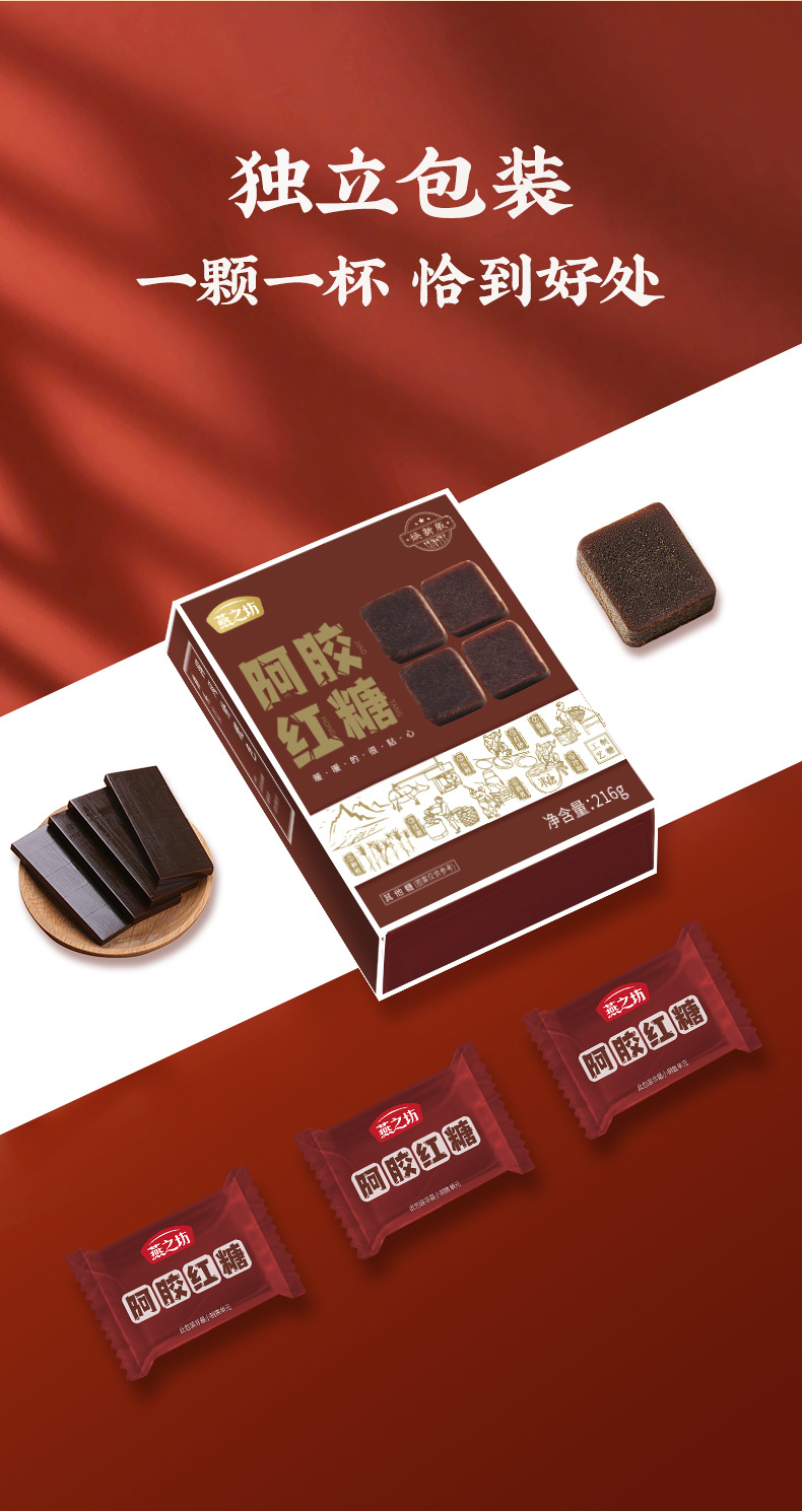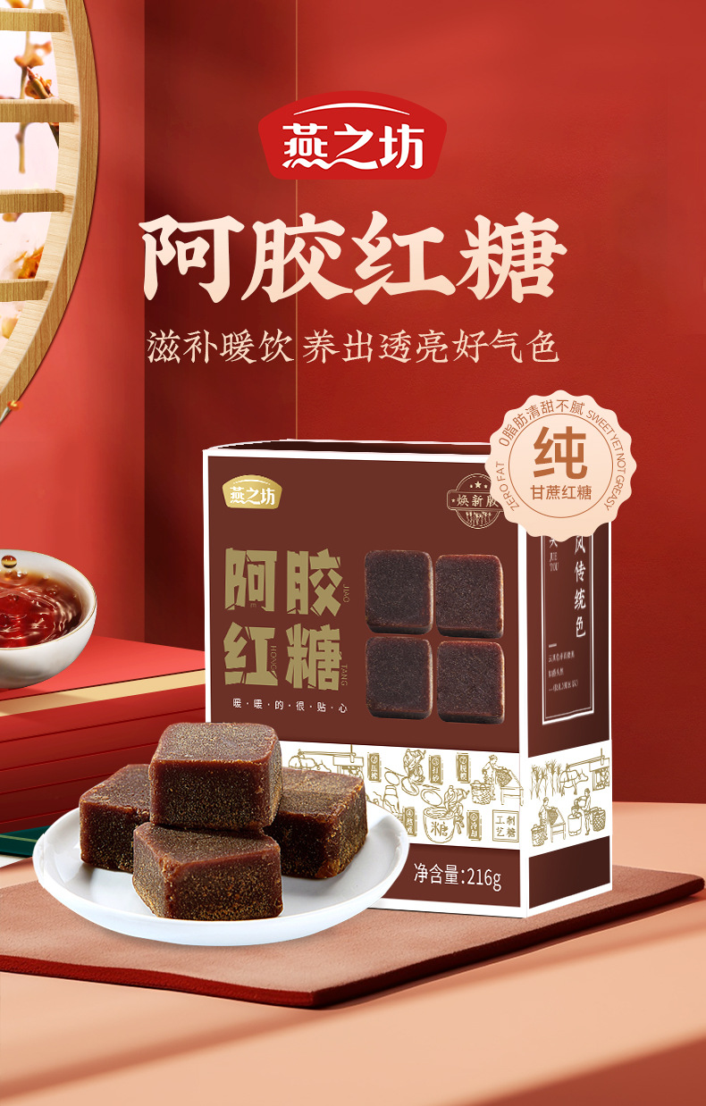 燕之坊阿膠紅糖黒糖塊広西ショ糖生理日即食老紅糖塊黒糖216g独立包装