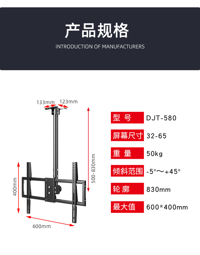 テレビハンガー天井屋根ブラケットデパート店広告機ハンガー55-95インチダブルロッドハンガー