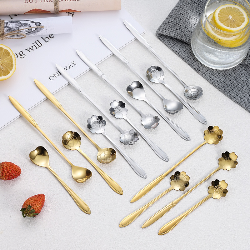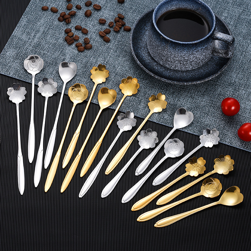 ステンレス花スプーン桜バラスプーン結婚式長柄ハートスプーンコーヒー攪拌スプーンお土産ツバメの巣蜂蜜