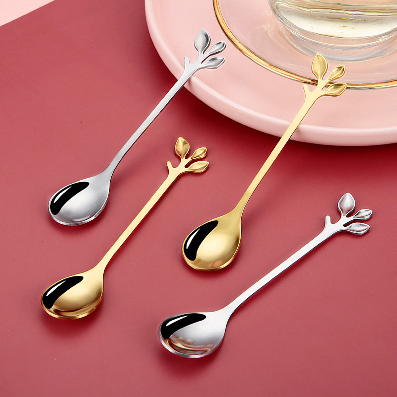 ステンレスの葉のスプーンはデザートのスプーンをかき混ぜます。