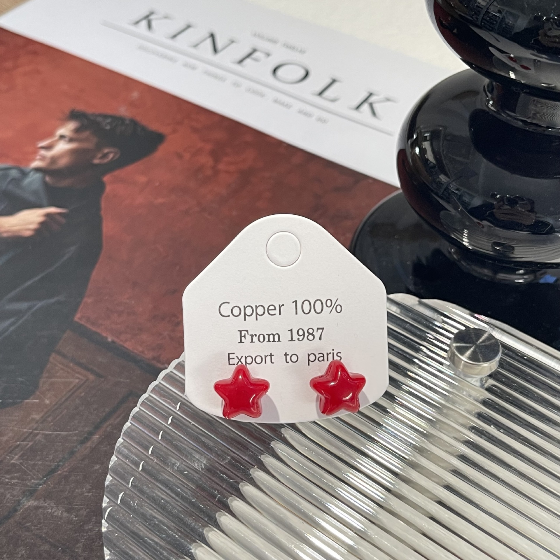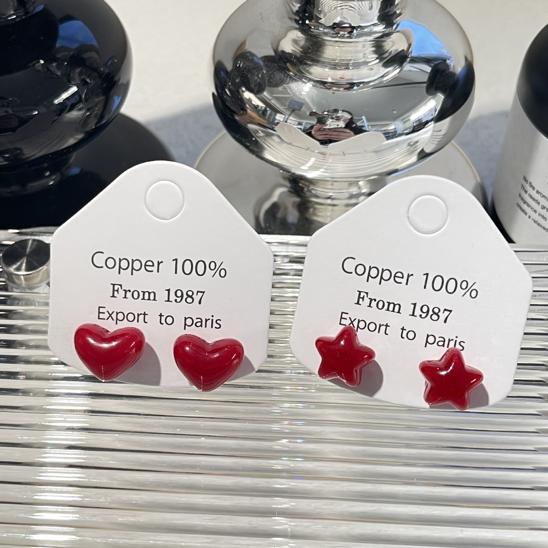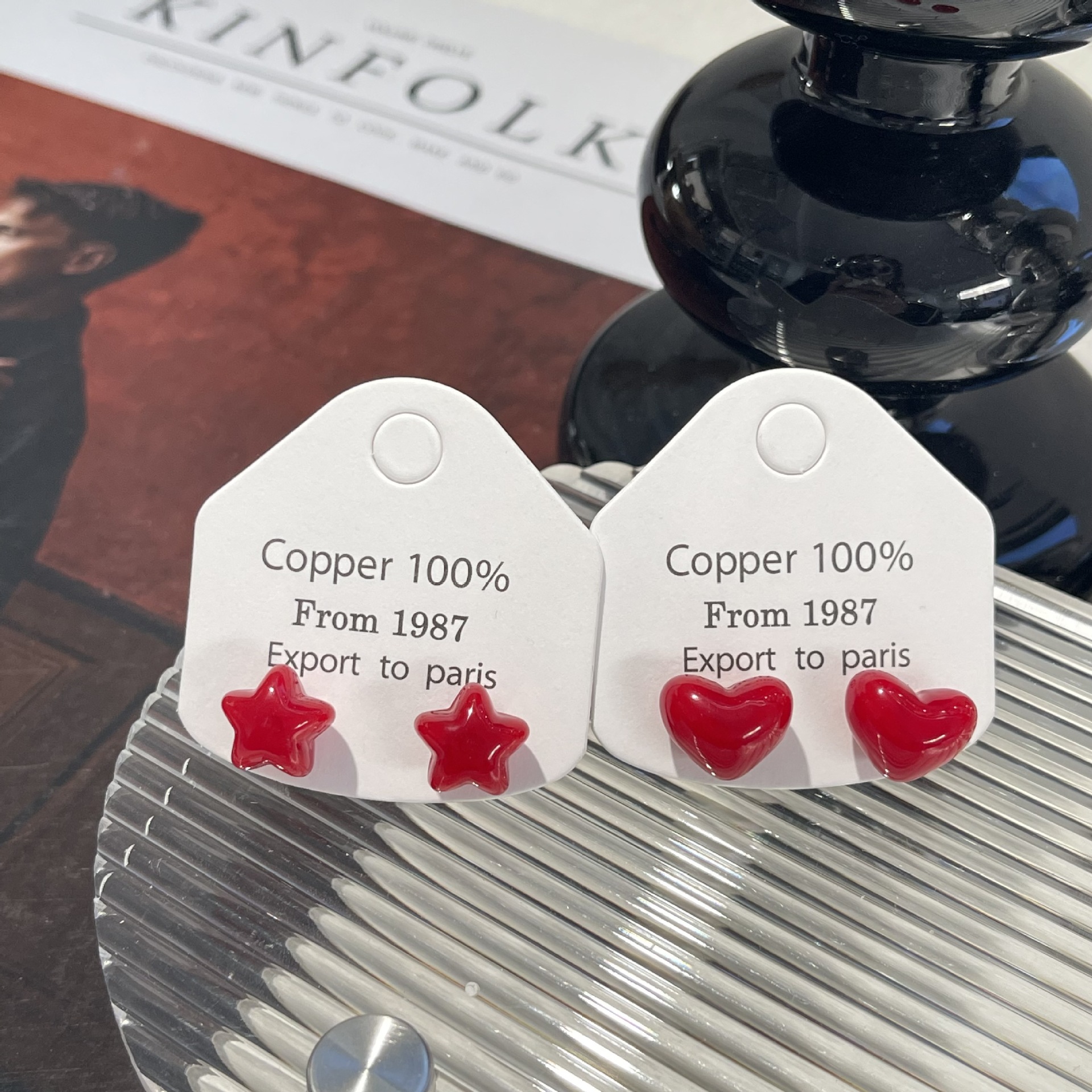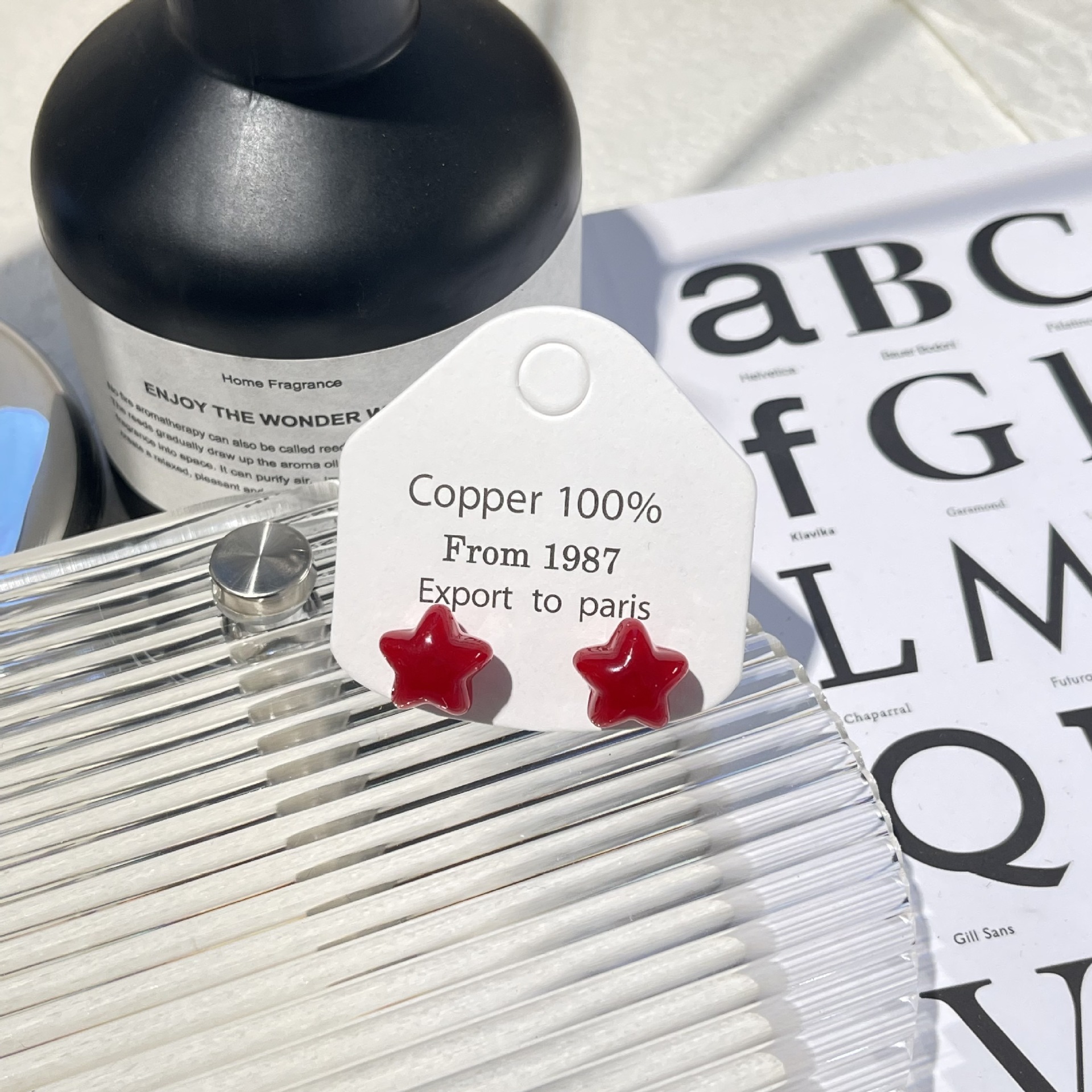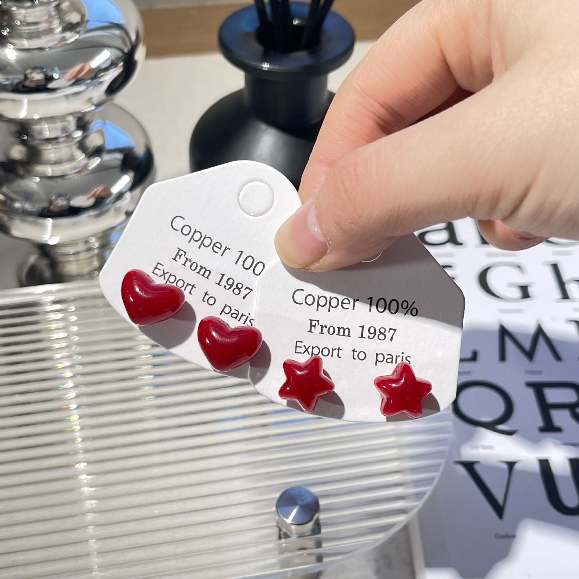 おしゃれでシンプルな新年の赤い愛の五角星のピアス