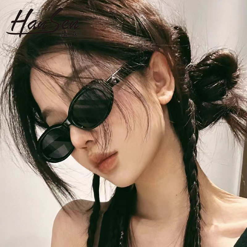 跨境新款椭圆框韩系墨镜防紫外线太阳眼镜女复古高级感防晒眼镜女