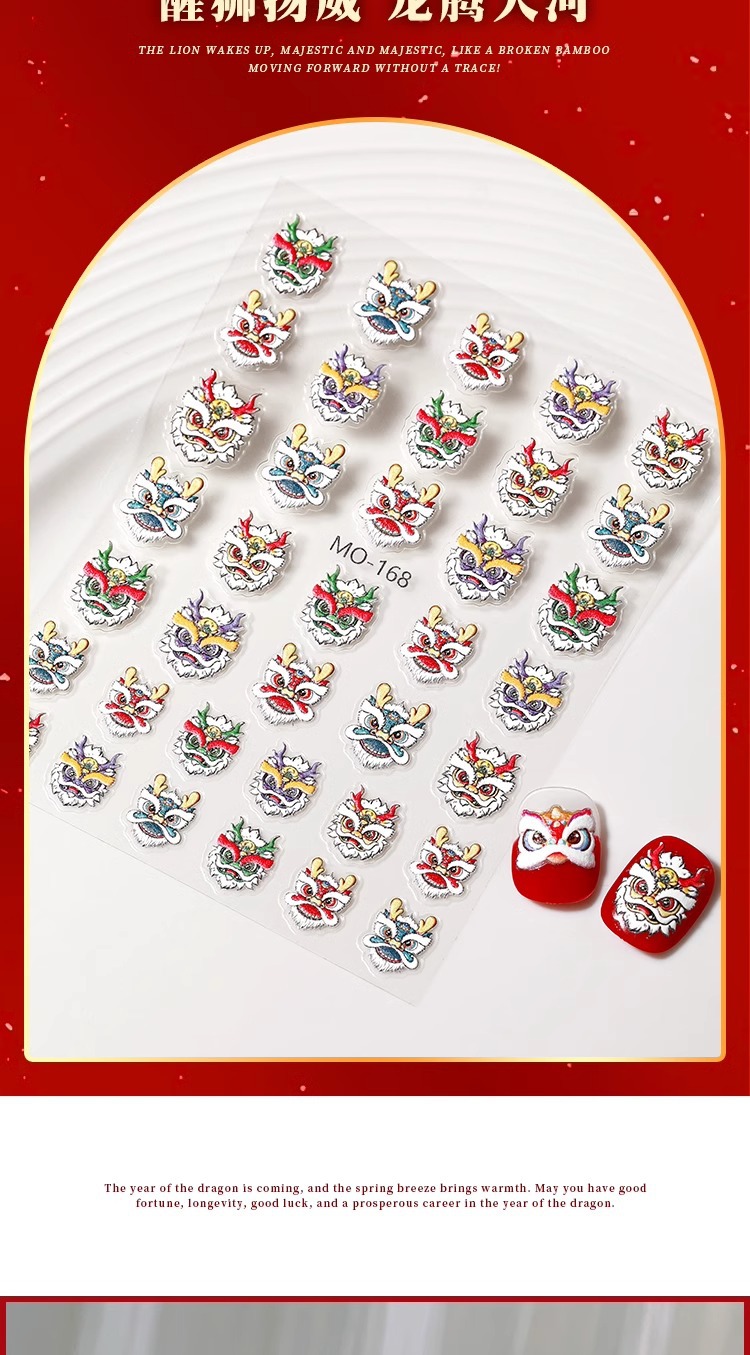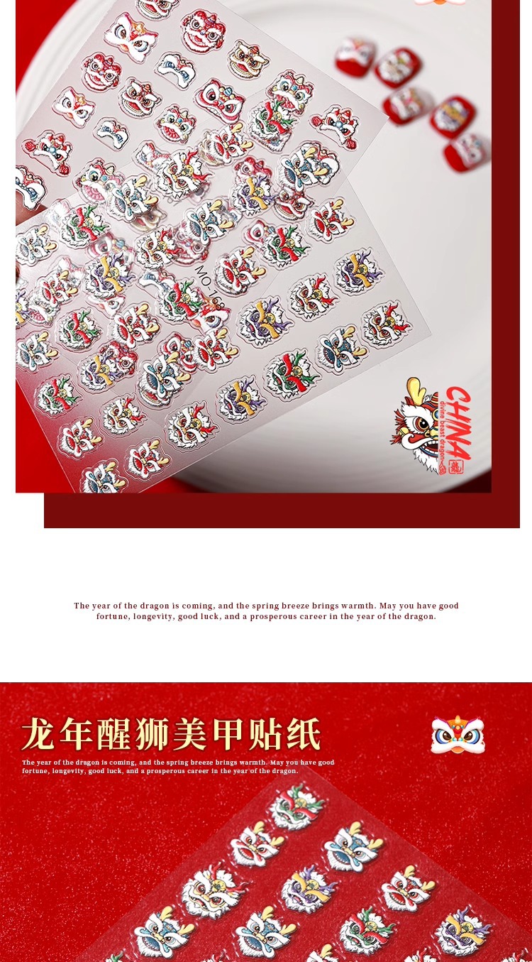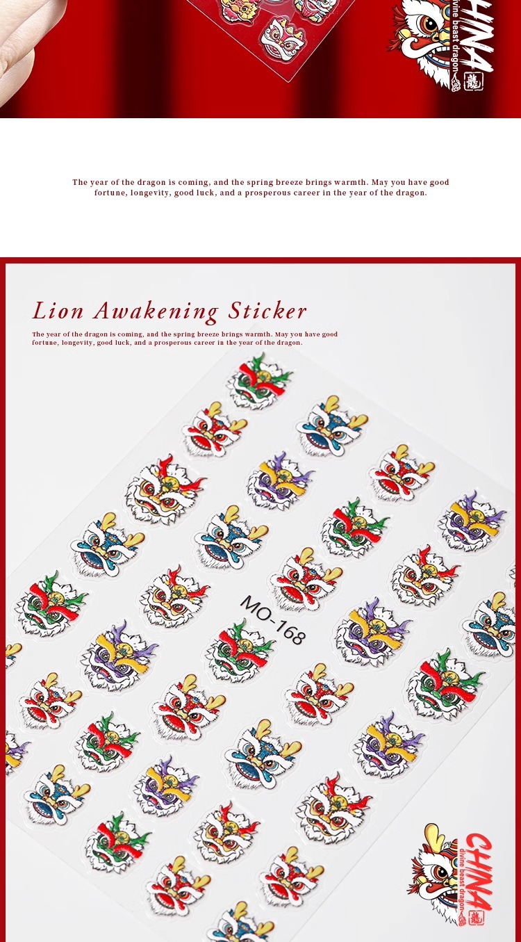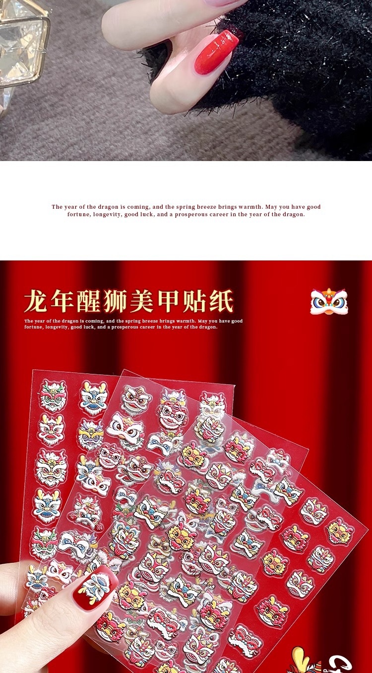 龍年覚醒ライオンネイルシール2024招財小乳龍新流行旧正月爪装飾品メーカー卸売り